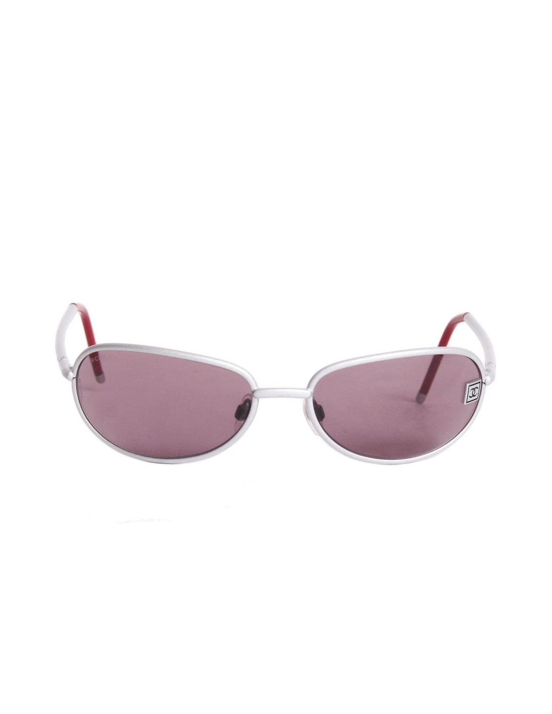 Lunettes de soleil, Chanel, en acier argent mat. Elles sont siglées sur le verre avec un double C.