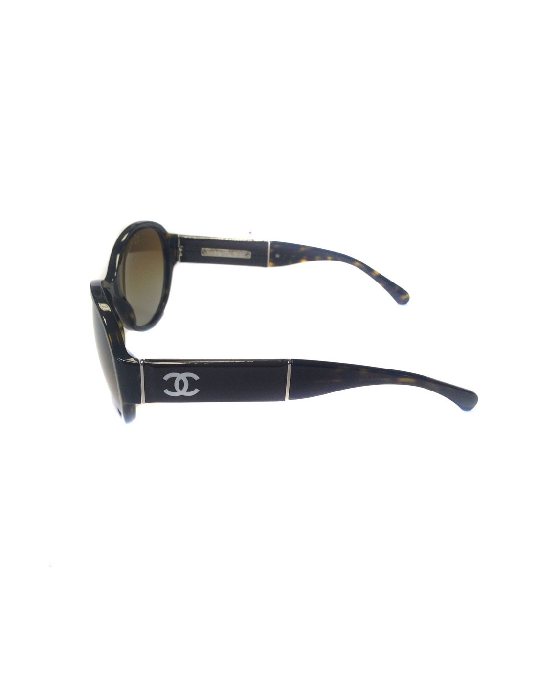 Lunettes de soleil Chanel, façon écaille marron. Etat neuf.