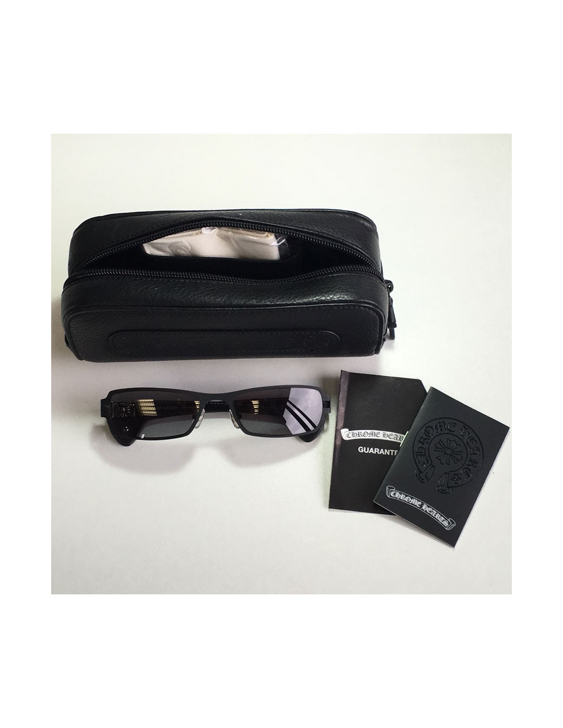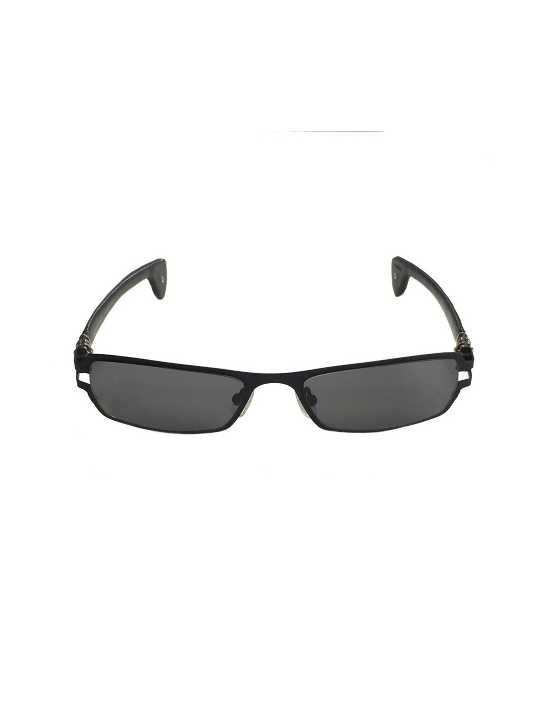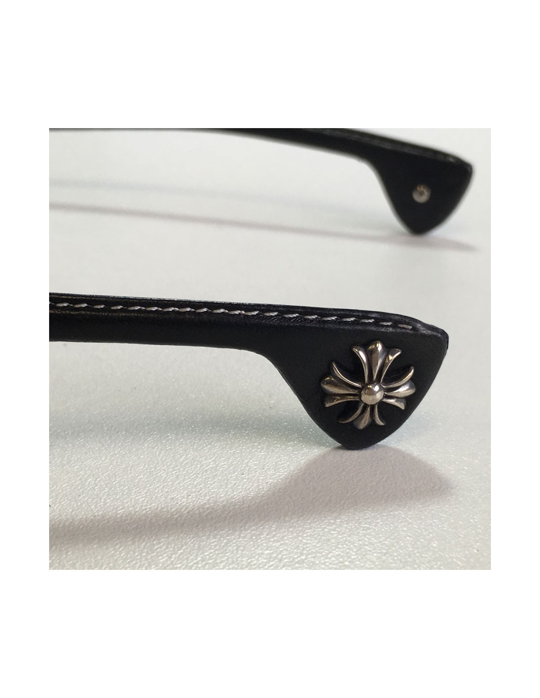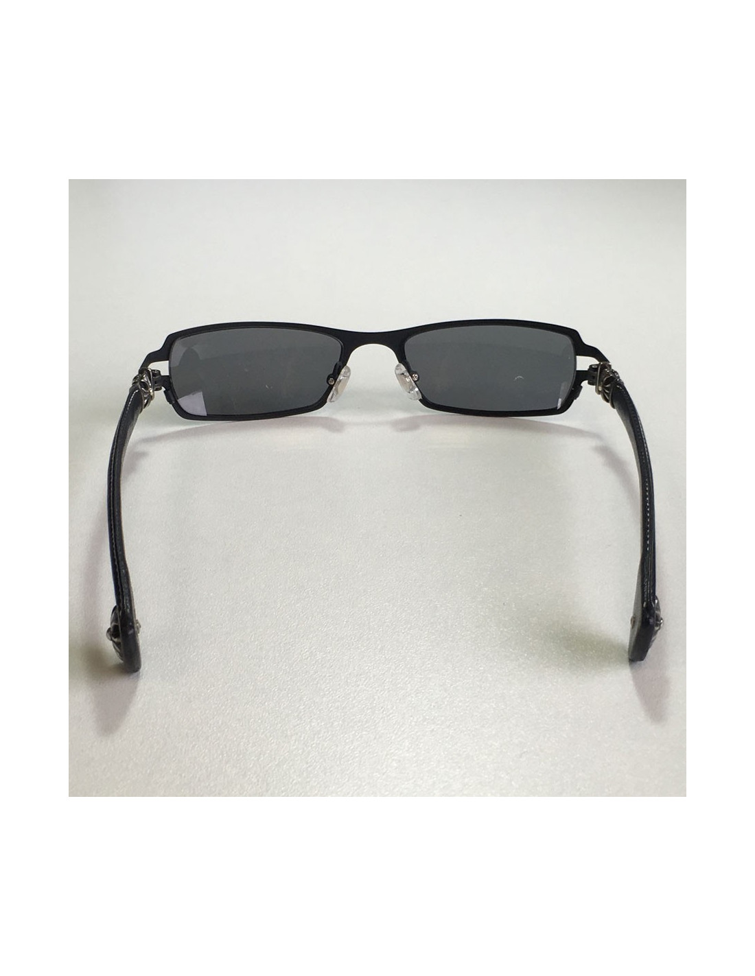 Originales!! lunettes de soleil CHROME HEARTS en métal noir mat, bijouterie en argent massif vieilli et branches en cuir. couleurs des verres: noire.