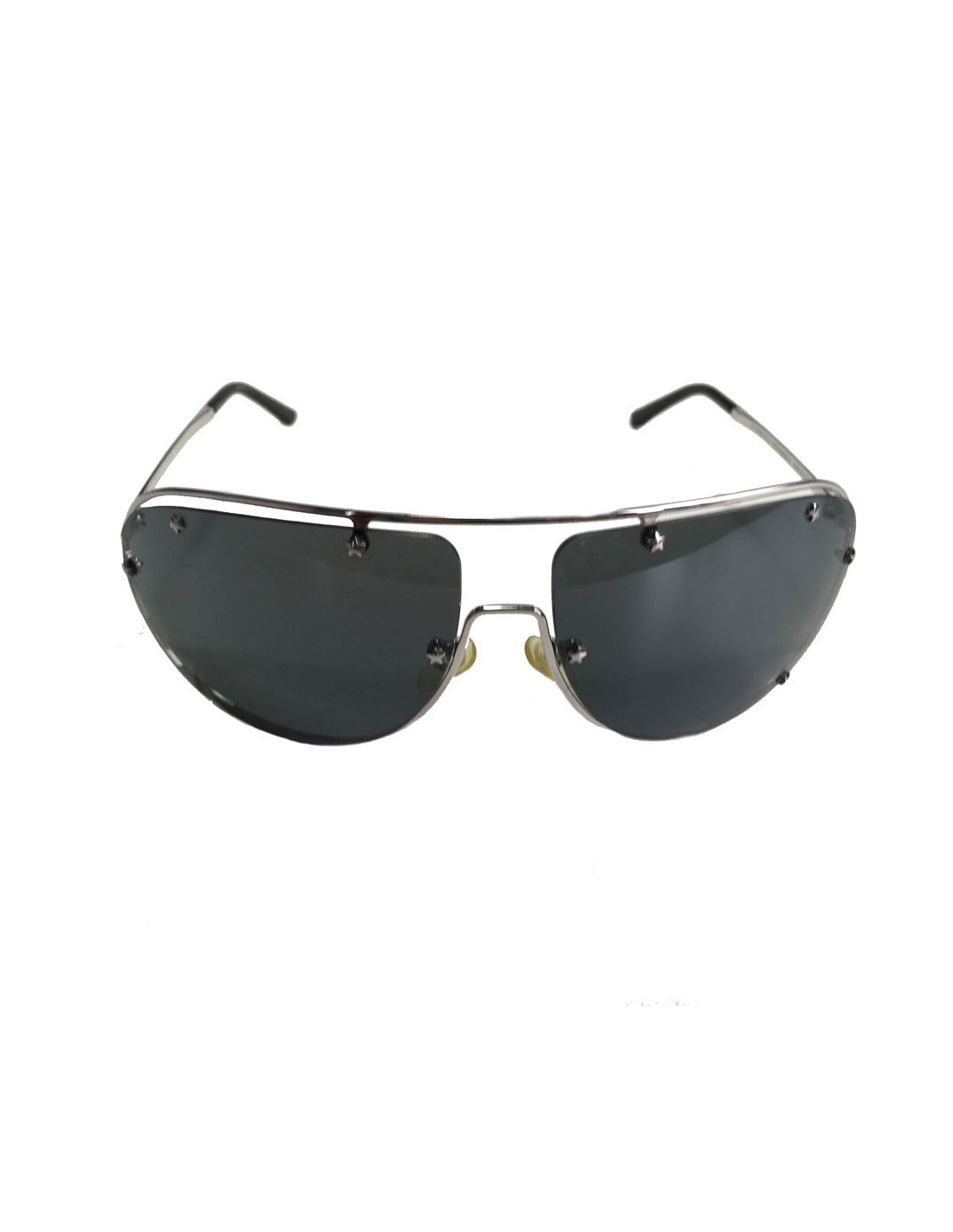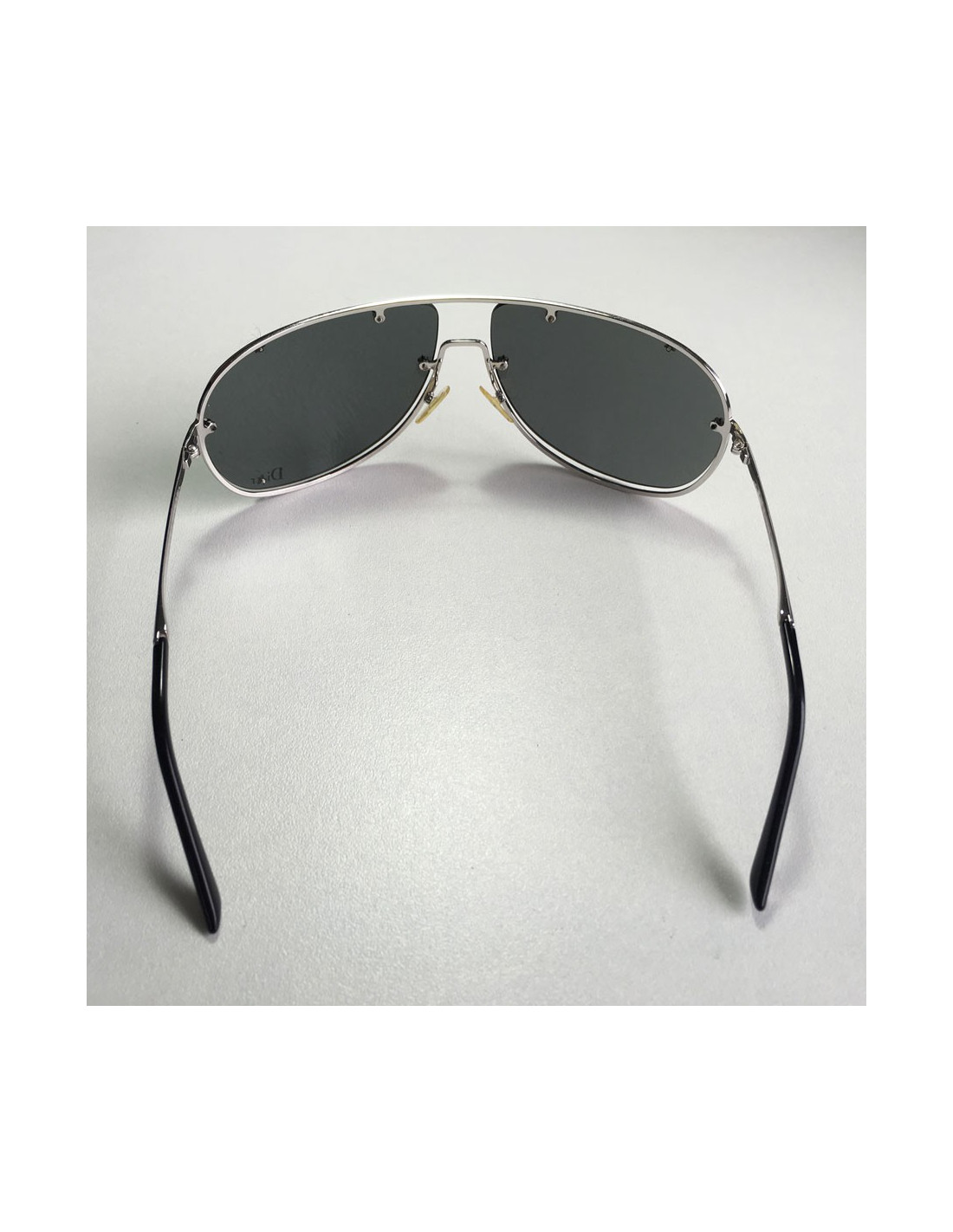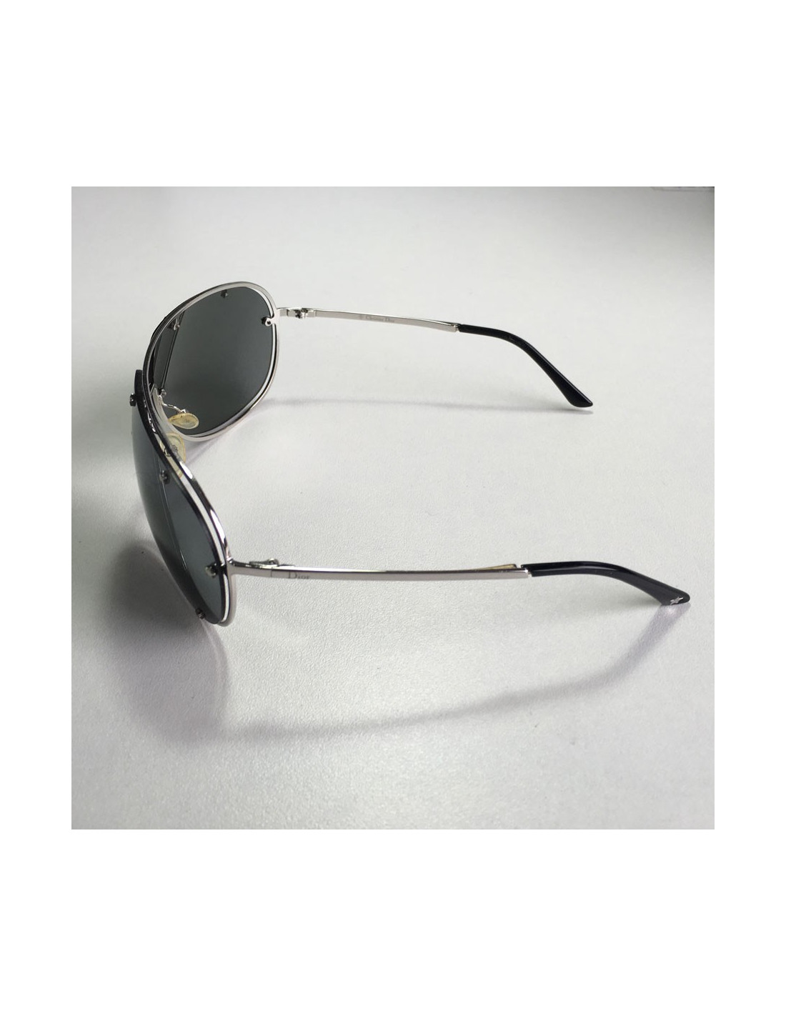 Lunettes de soleil DIOR en métal argenté. Modèle aviateur. Teinte des verres foncée. En très bon état.