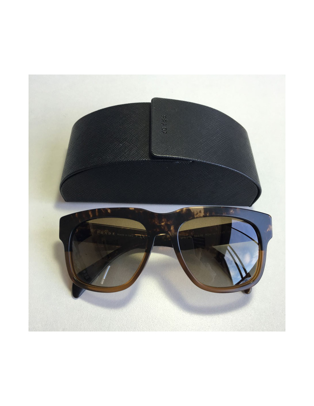 Lunettes de soleil PRADA en plexi mat façon écaille de tortue marron. En parfait état.