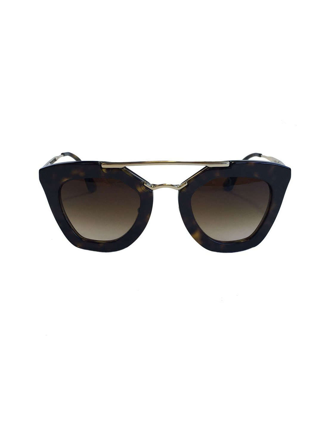 Lunettes de soleil PRADA en métal doré et plastique façon écaille de tortue