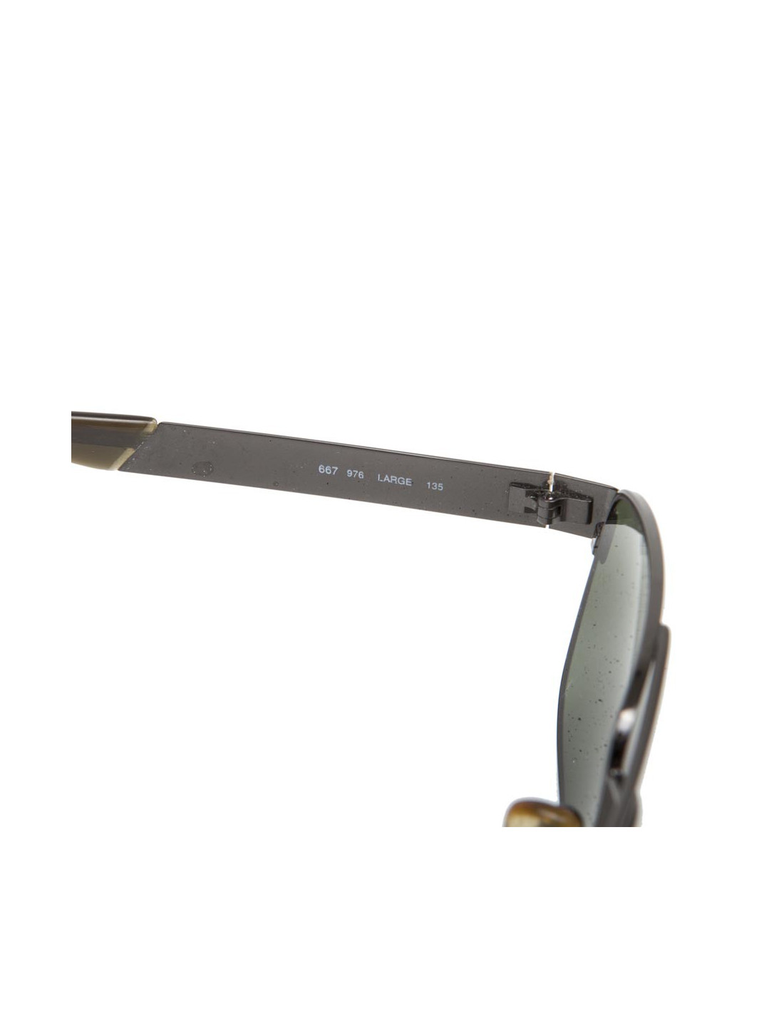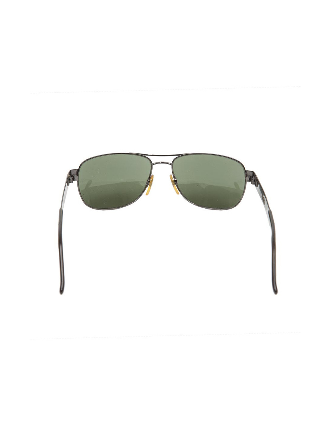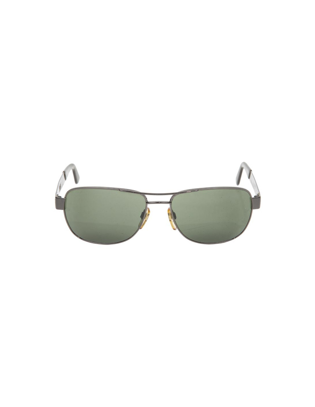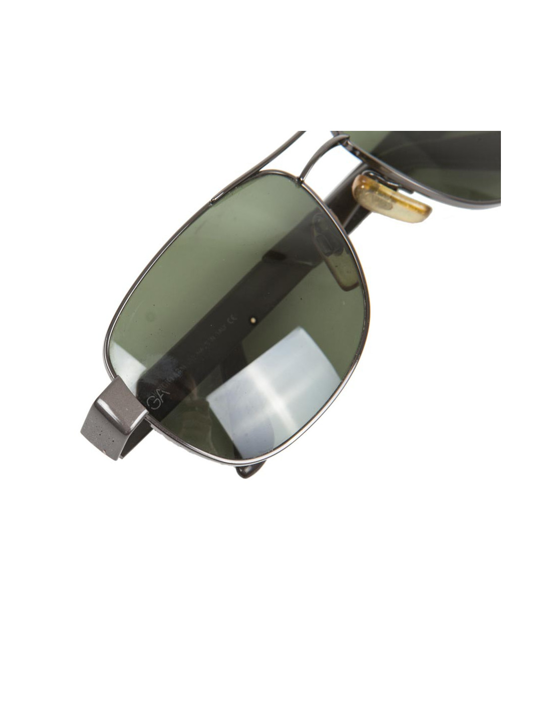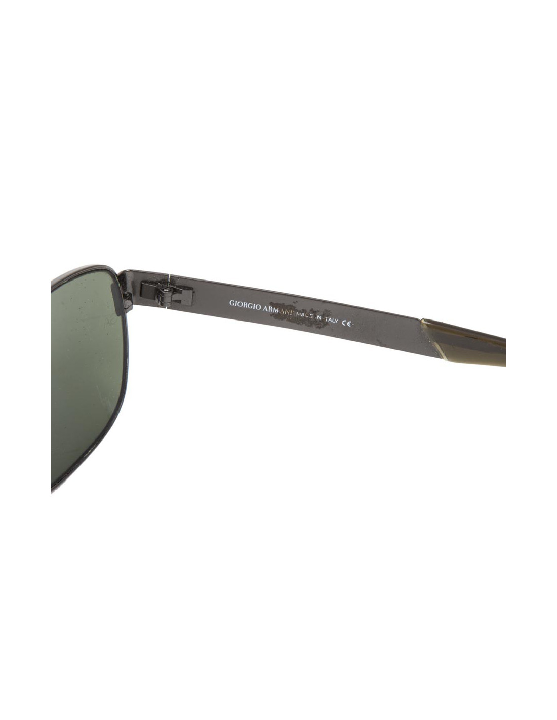 Lunettes de soleil GIORGIO ARMANI. Monture en métal marron foncé avec verres fumés vert foncé, branches en métal gris.