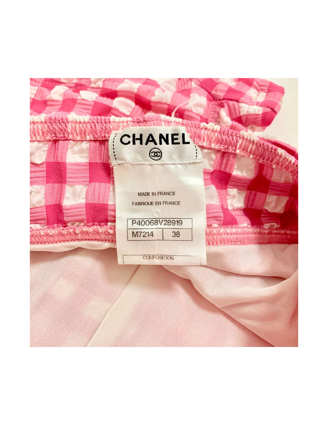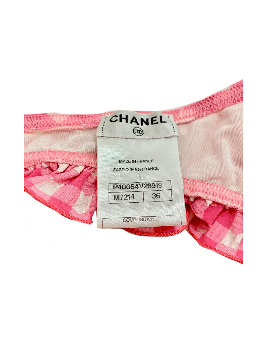 Caractéristiques de ce maillot de bain CHANEL vichy rose et blanc