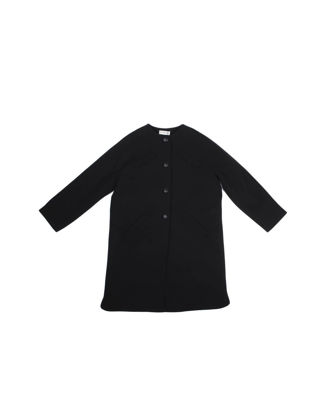 Manteau T 40 Balenciaga Edition, collector, pièce rare en drap de laine noir, 2 poches sur les cotés et 2 poches trompe l'oeil au niveau de la poitrine.