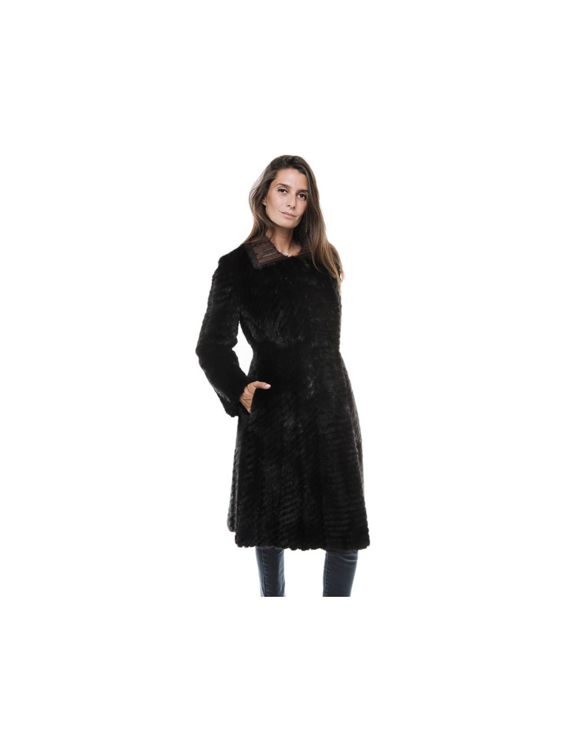 Sublime. Manteau croisé en vison brun Fendi. Fermeture par bouton pression invisible. Deux poches de chaque côté. En très bon état.