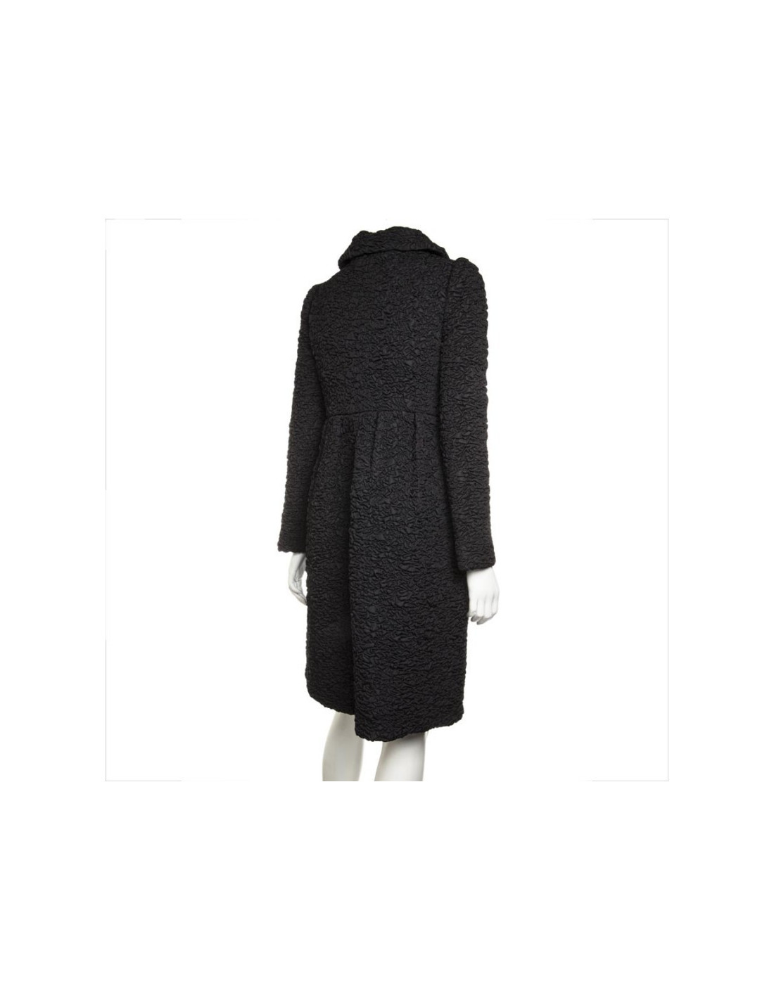 Très élégant manteau Prada en matière cloquée noire (étiquette de taille et de matière), taille haute à double boutonnage et 2 poches sur les cotés.
