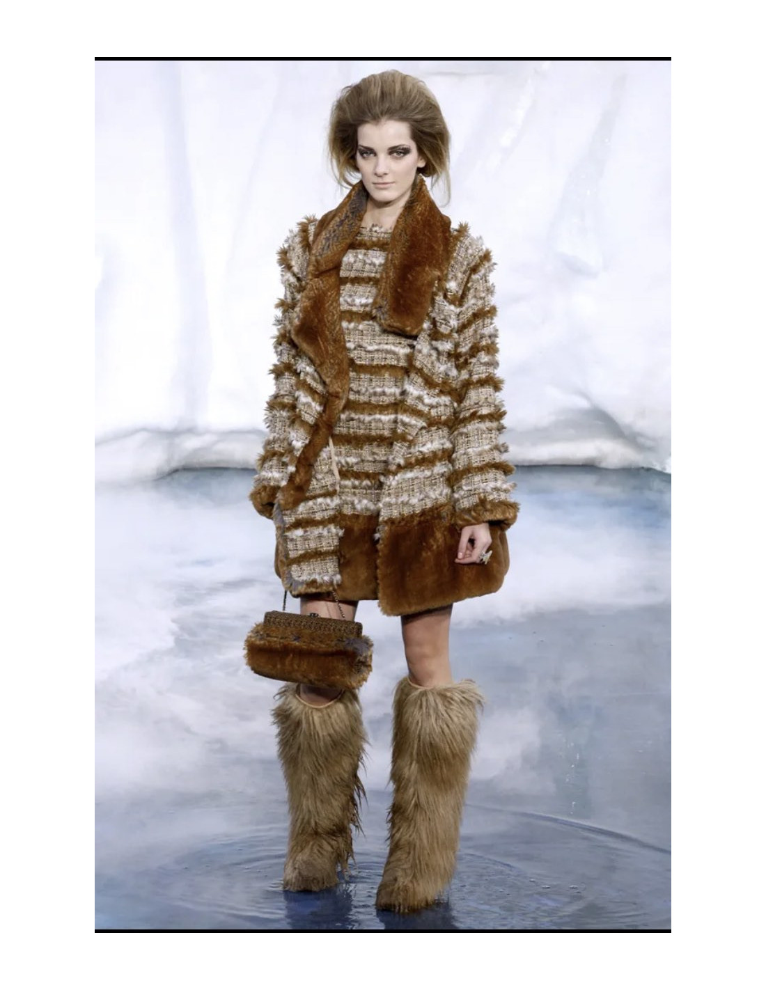Matière : tweed, peau de chèvre et fausse fourrure
