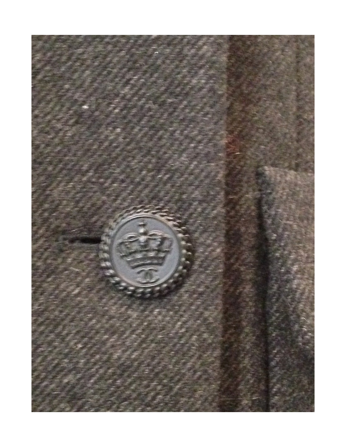 Il est croisé par un double boutonnage. Les boutons représentent une couronne et le double C noir.