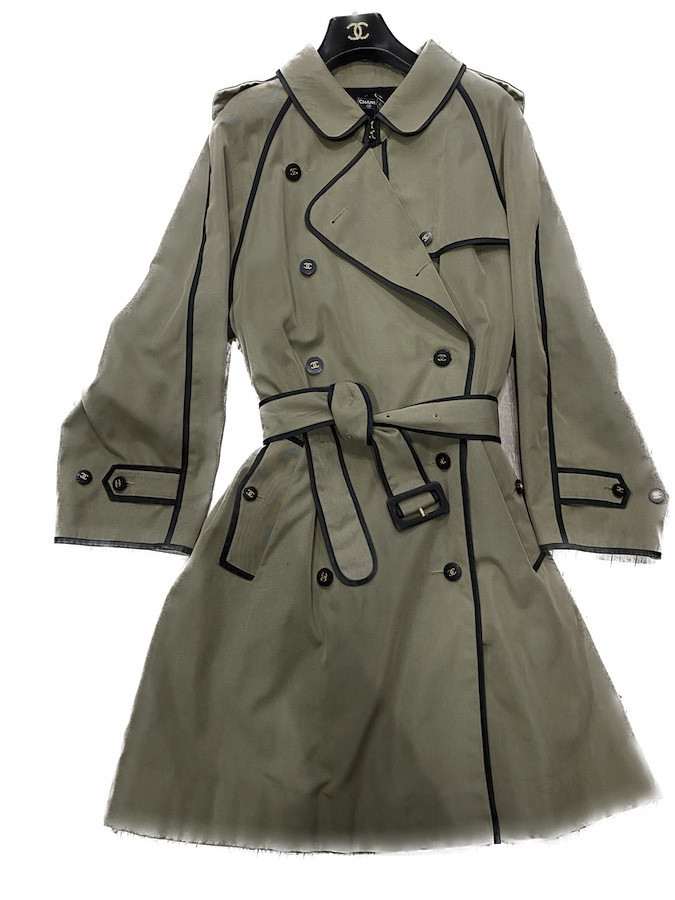 Karl Lagerfeld Trench coat Chanel croisé kaki 1996-1998