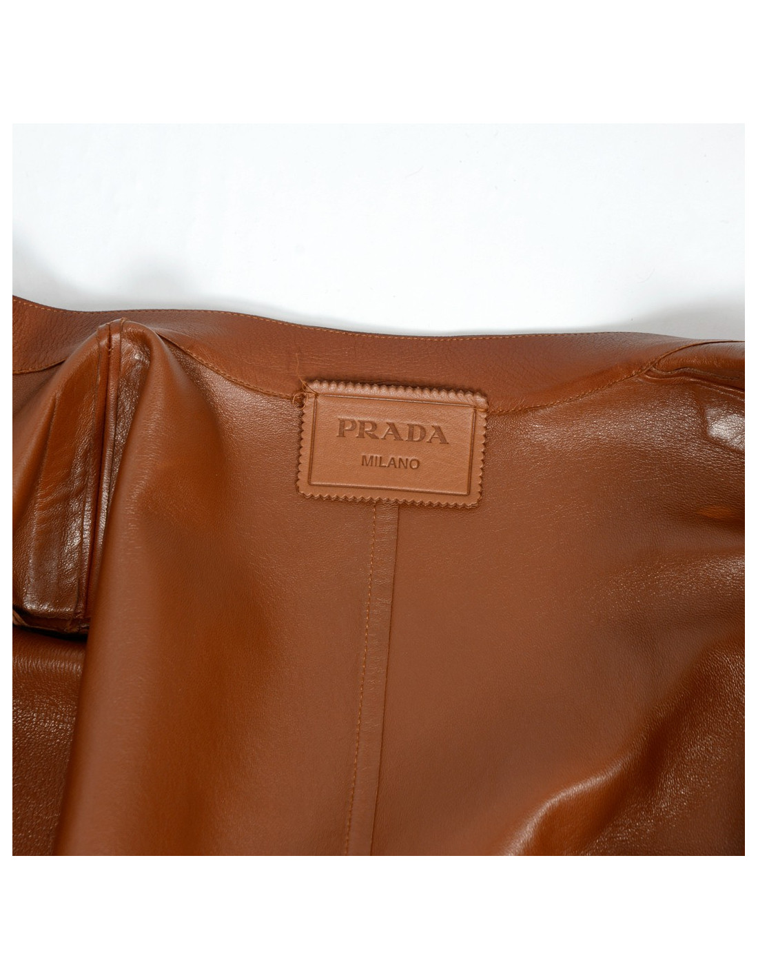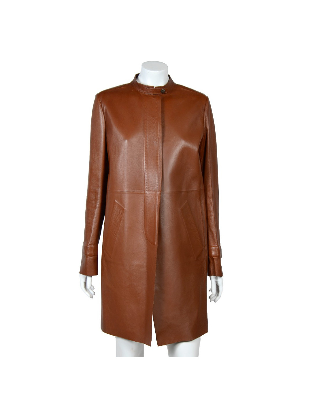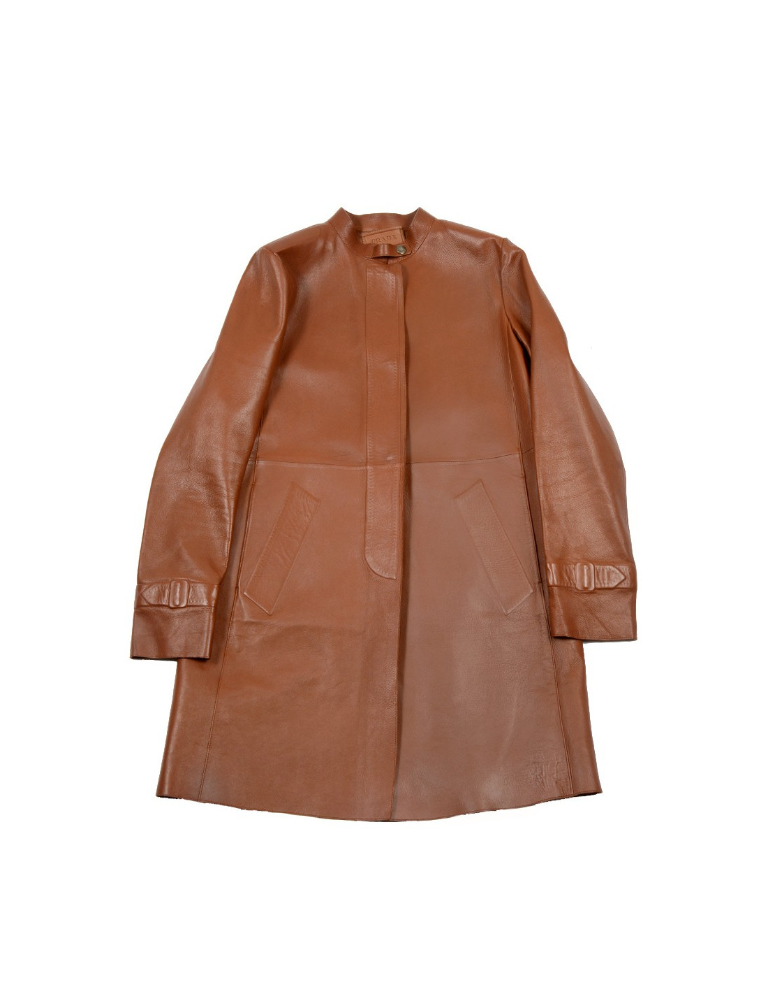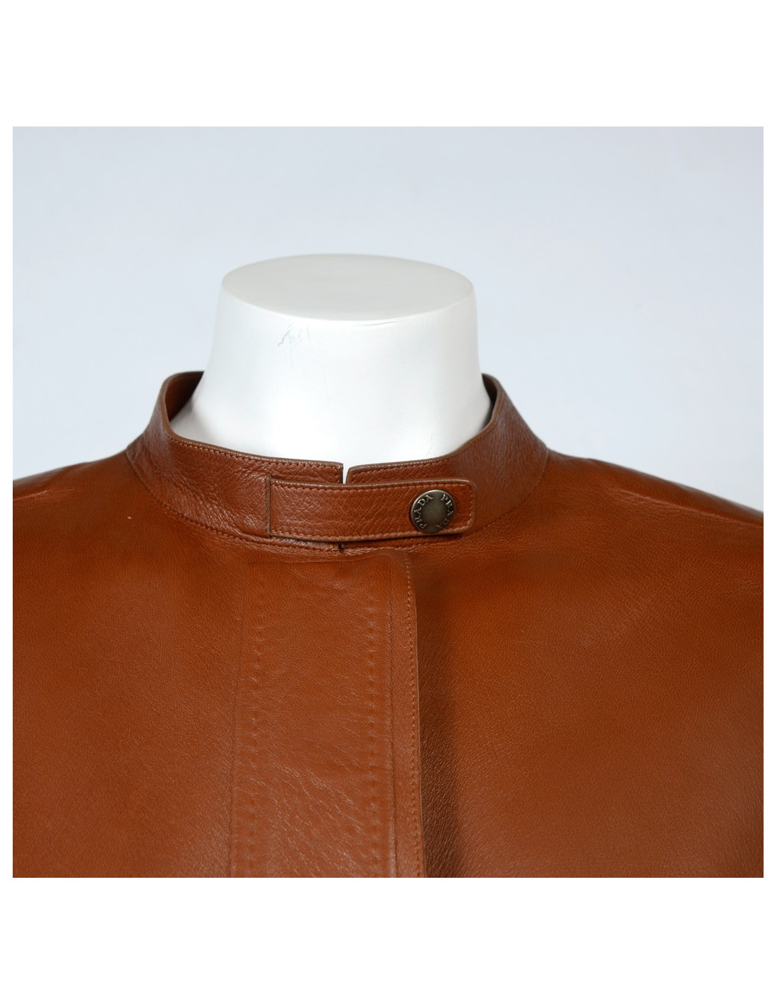 Magnifique et chic! Trench en cuir d'agneau lisse fauve, taille 42 italien, équivaut à une taille 38 française, avec des poches fantômes et des fentes (poches). A l'intérieur il y a une double poche. Il se ferme par boutons pression. Il est en très bon état.