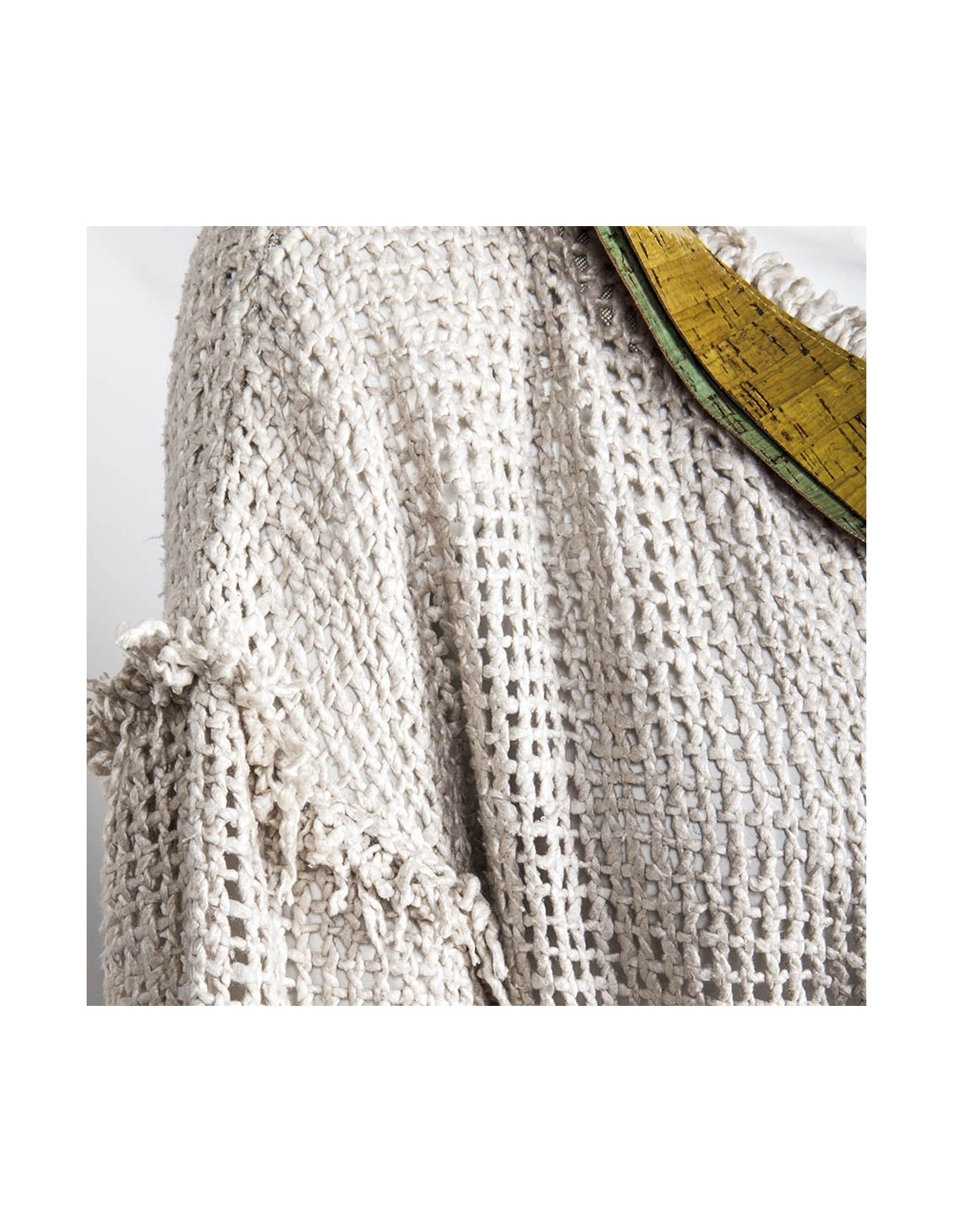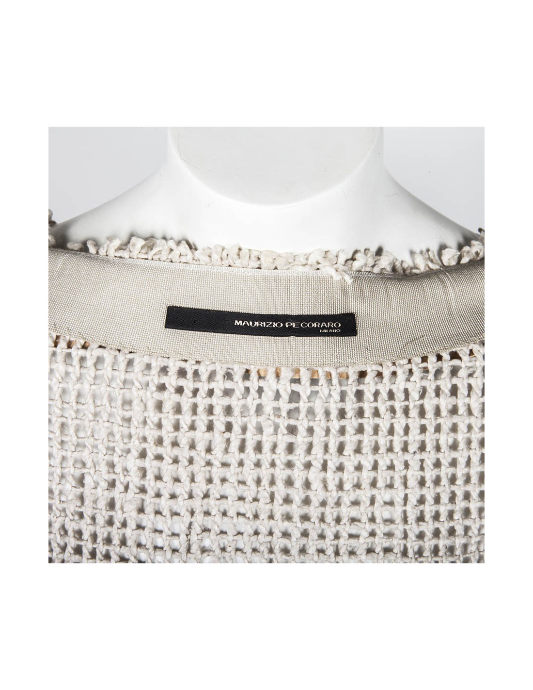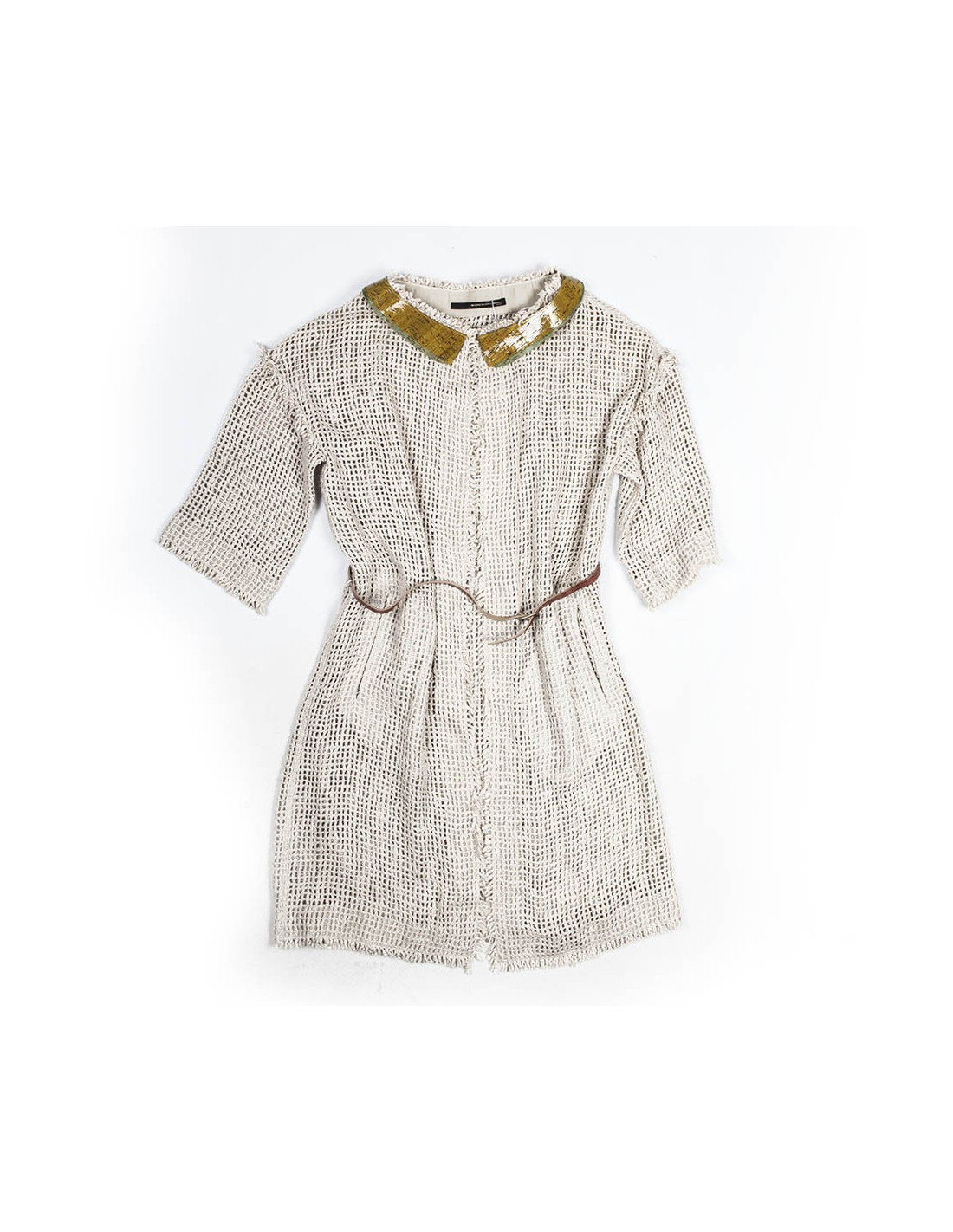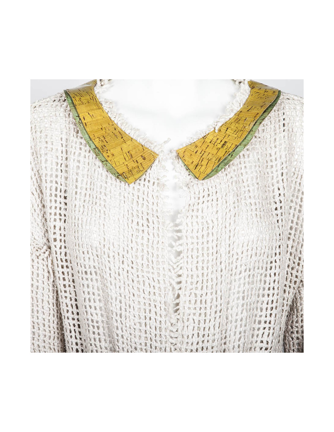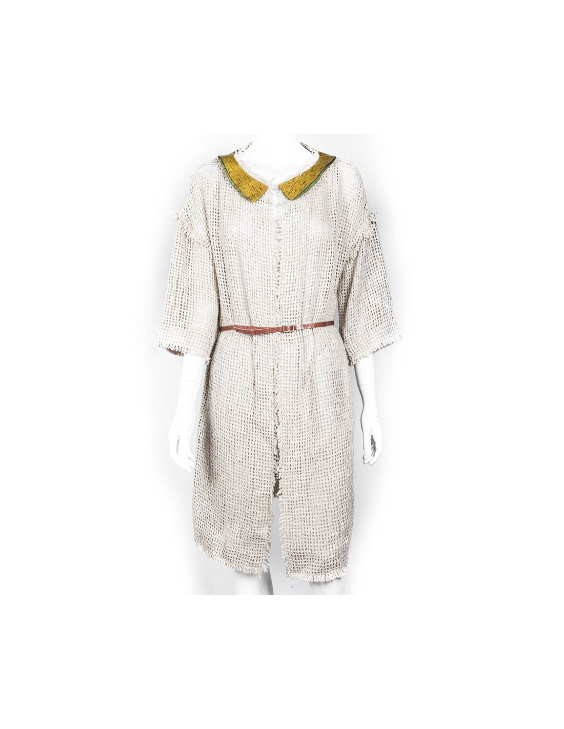 Manteau MAURIZIO PECORARO en soie beige, col jaune et vert