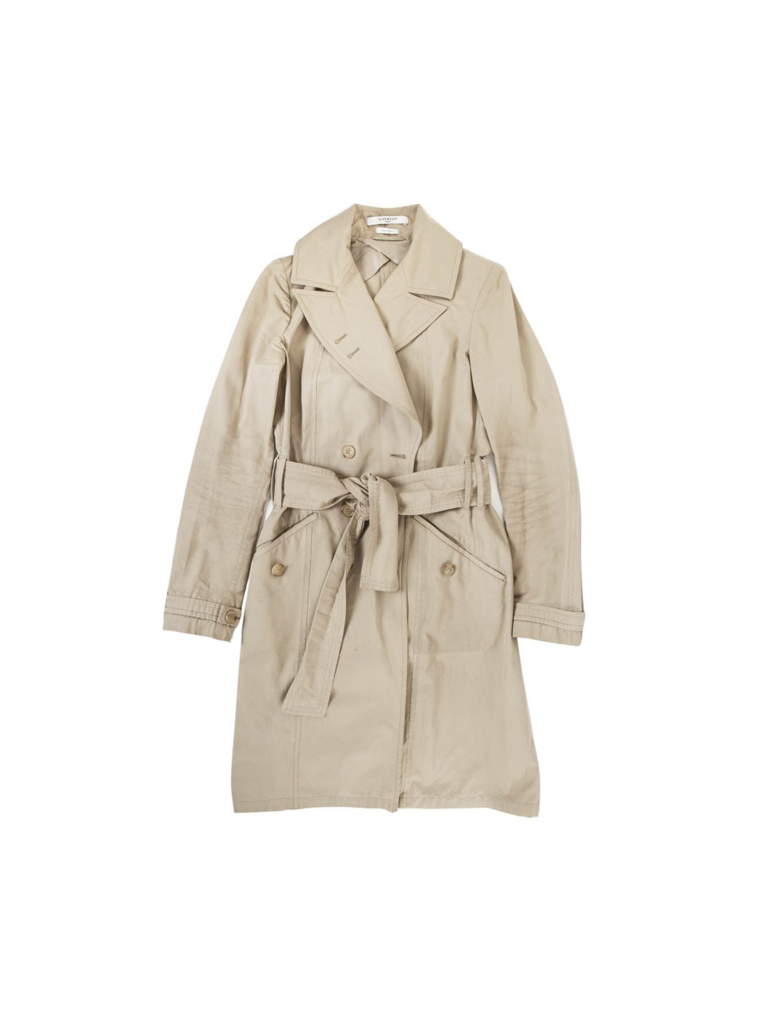 Trench GIVENCHY en coton beige, double boutonnage avec 2 poches sur les côtés. Taille 38. Il y a une fente à l'arrière.