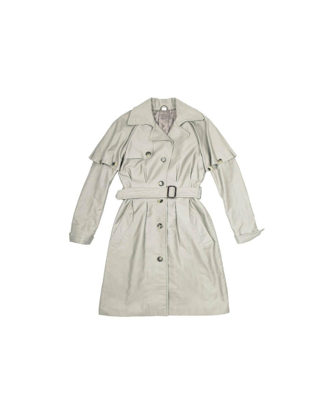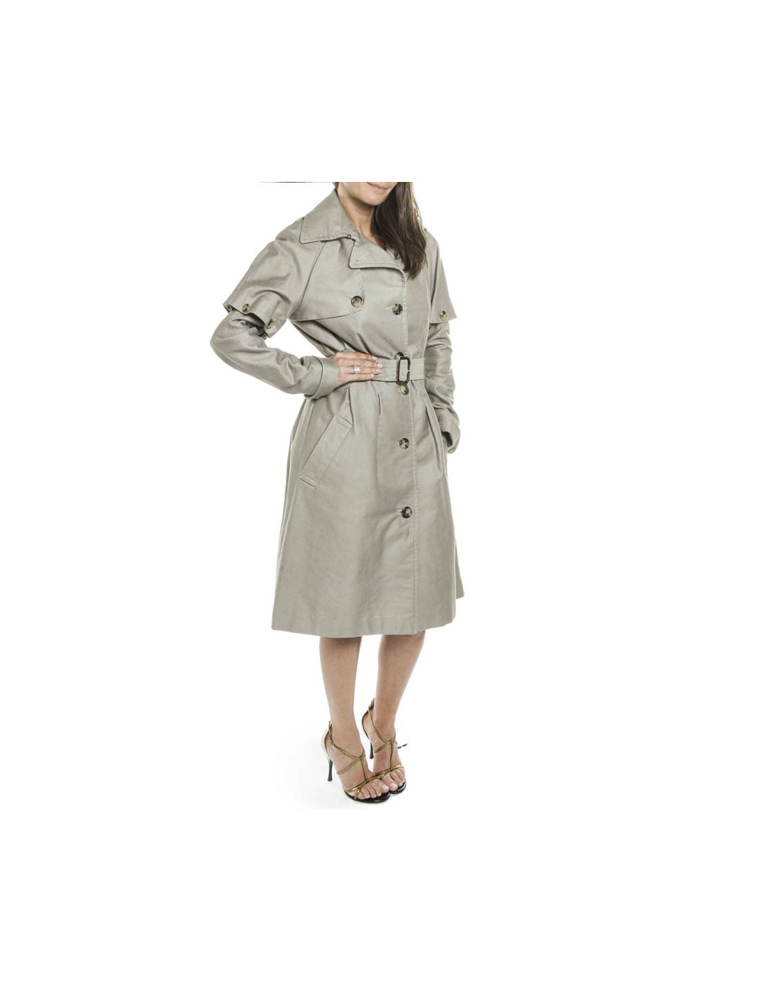 Utile en toutes circonstances, ce trench très féminin en coton est très structuré au niveau de la taille. Les poignets amovibles sont attachés par des pressions. Il est doublée en satin.