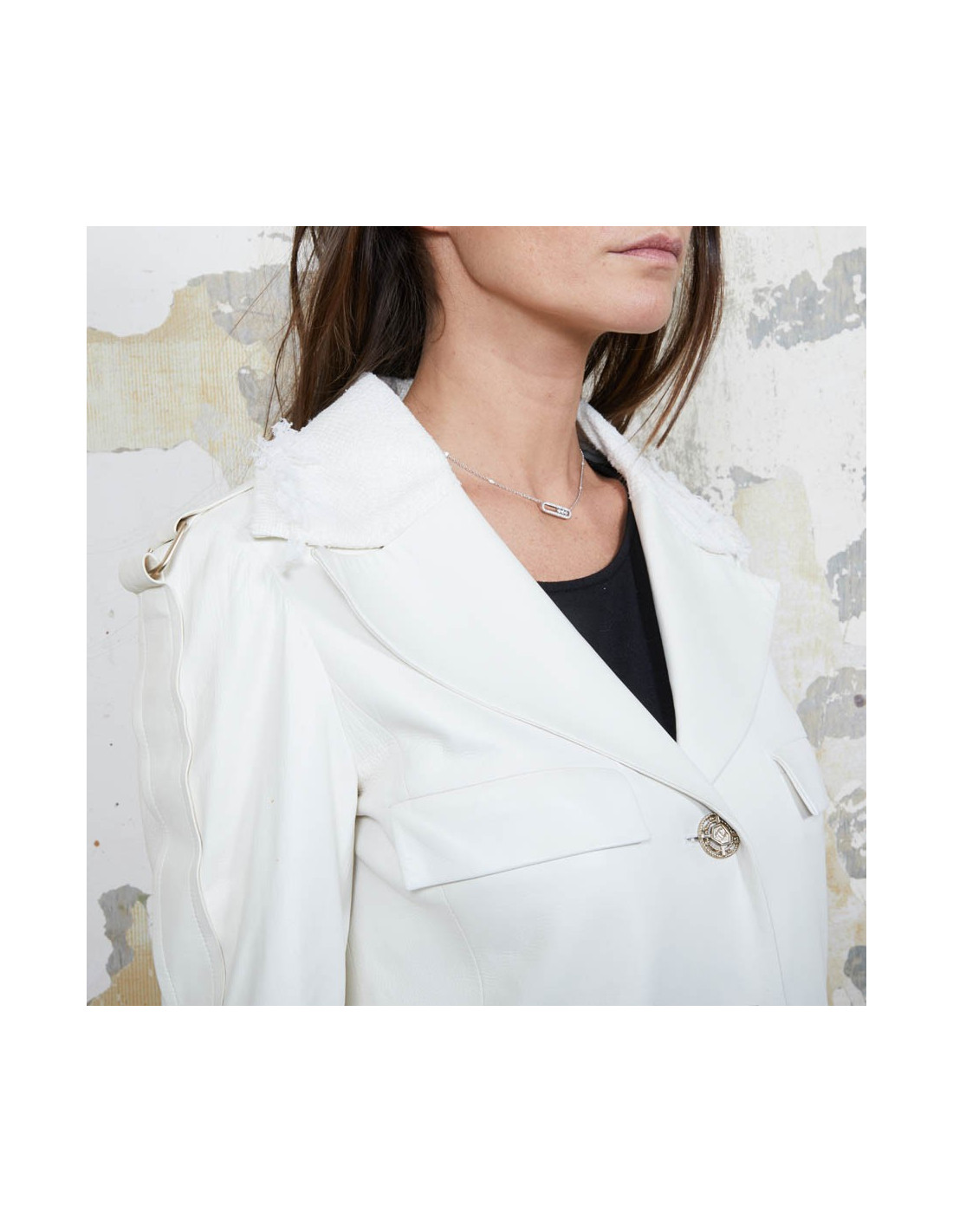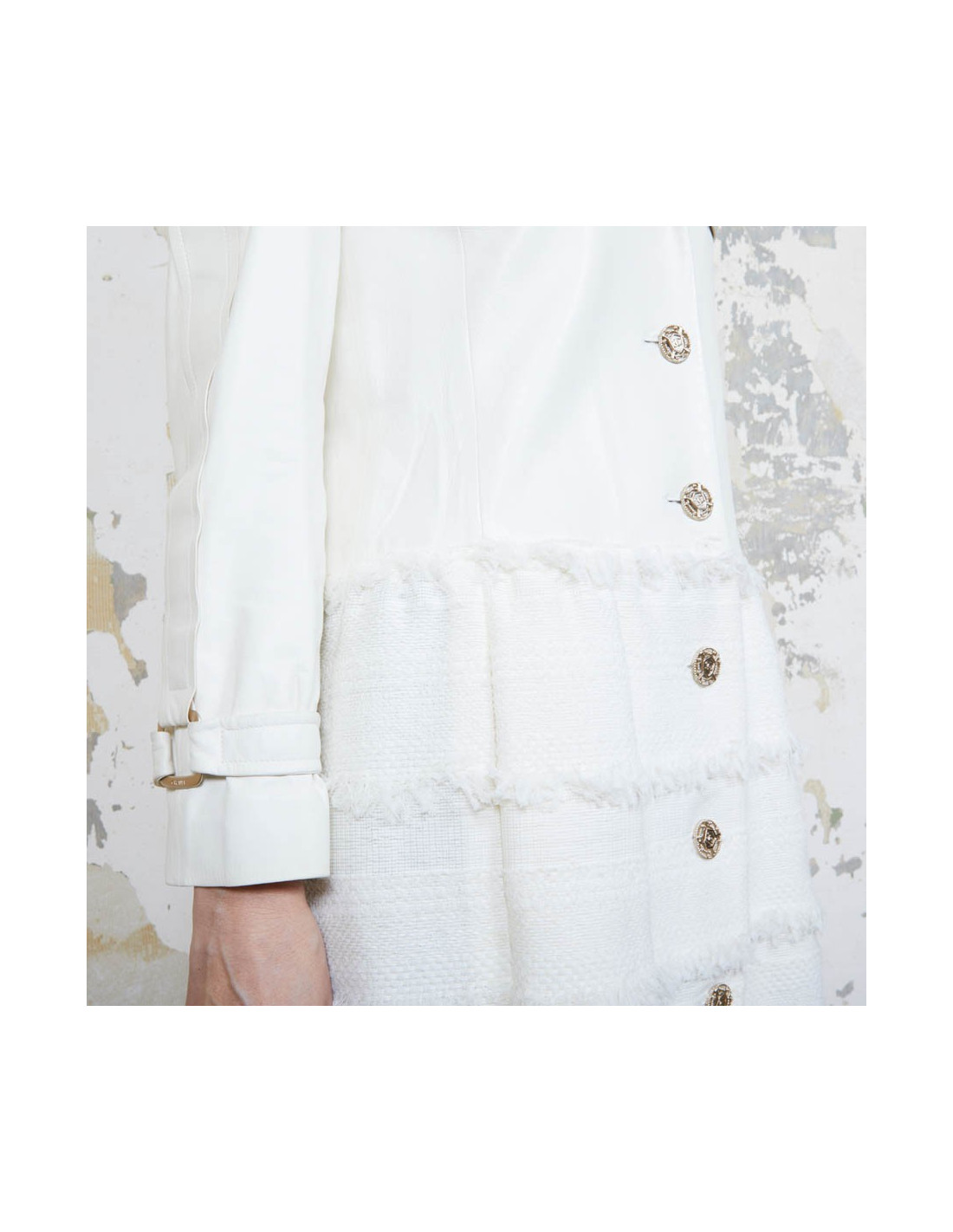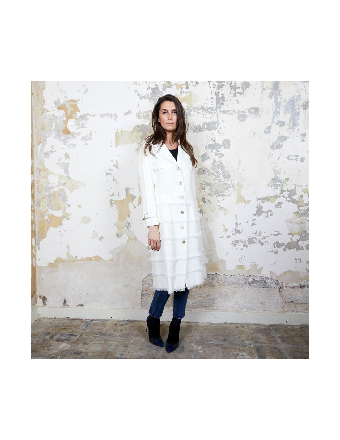 Derniers articles en stock MANTEAUX-TRENCHS Manteau CHANEL tweed blanc et noir CHANEL 35311 5 300,00 € Manteau long CHANEL cuir et tweed Condition : très bon étatPays de fabrication : ItalieTaille : 40Matière : 46% laine, 29% polyamide, 25% alpaga. Incrustations en cuir de veauDoublure : 64% coton, 36% soieCouleur : noir, blancDimensions à plat: épaules : 48 cm, sous la poitrine : 49 cm, hauteur : 130 cm, longueur des manches : 56 cm, tour de poignet : 34... Ajouter au panier
