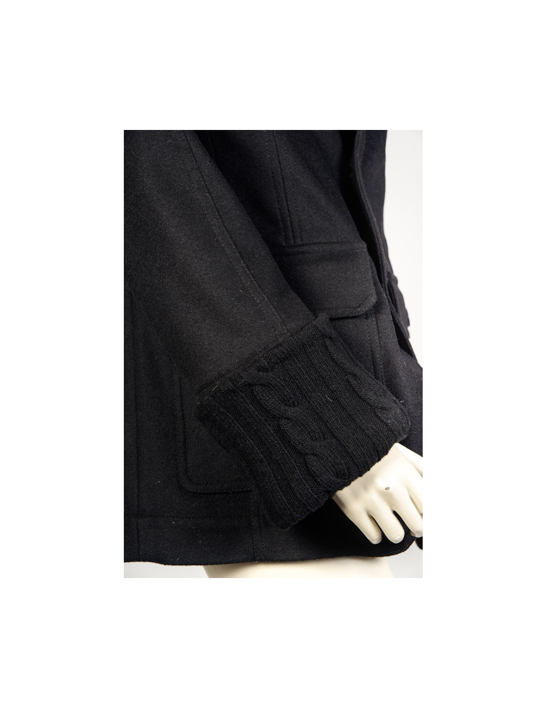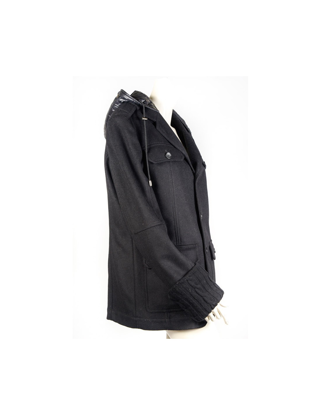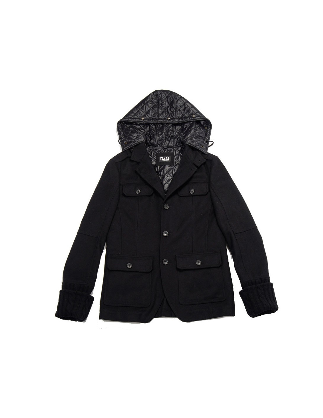 Parka Dolce&Gabbana noire composée d'une doublure avec capuche effet doudoune indépendante qui se rattache par une fermeture zippée. La parka comporte deux poches en bas et deux poches en haut, ainsi que deux poches intérieures, le bas des manches est en laine, il y a quatre boutons pour fermer la parka . C'est une taille 48 italien, équivaut à une taille 44 français. Très bon état.