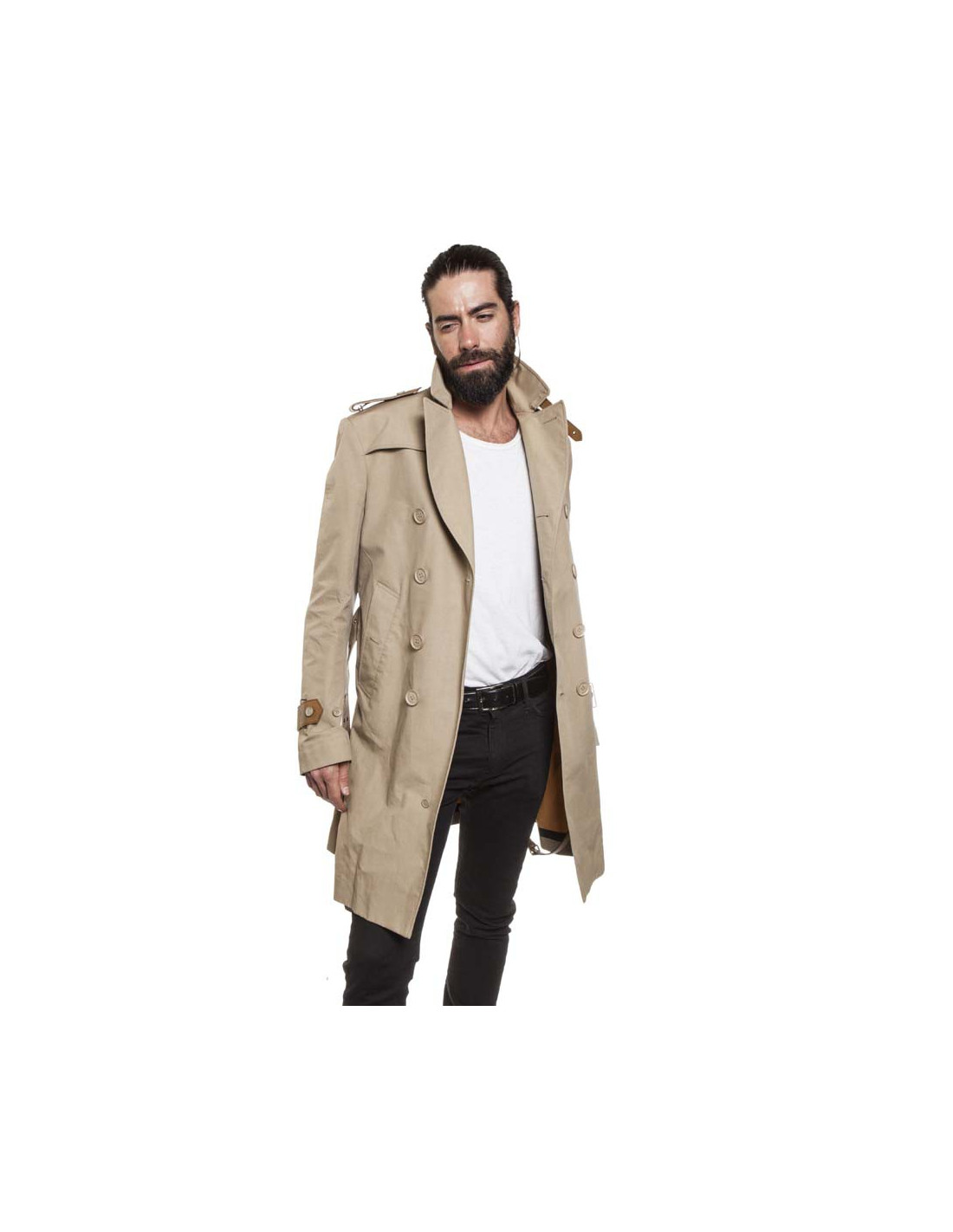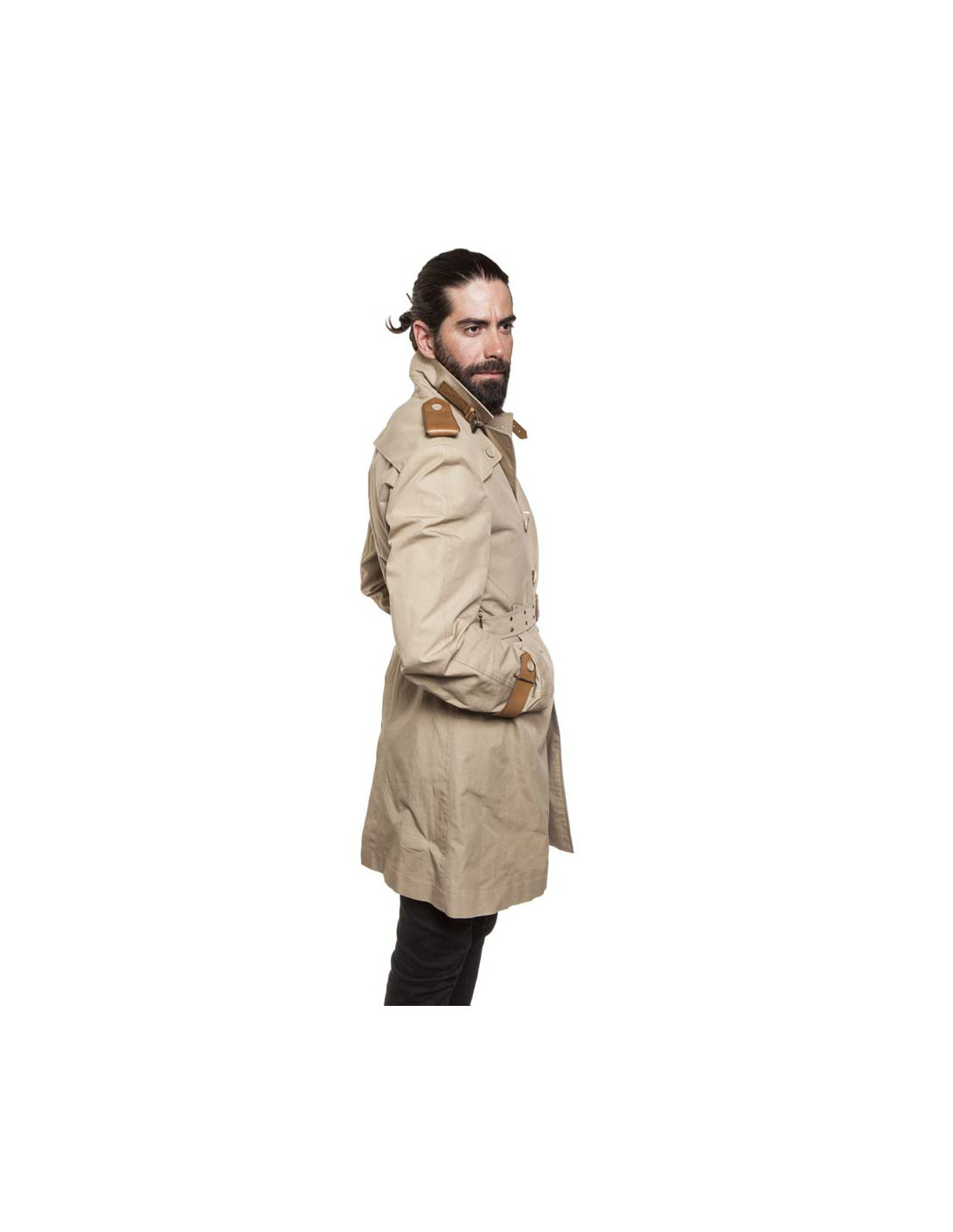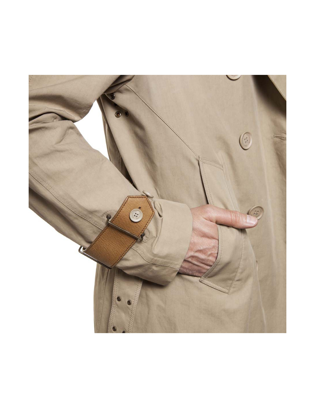 Trench beige croisé Taille 50 (absence d'étiquette de taille), pour équitation, Burberry. En coton et cuir naturel et boutons siglés. Nombreux détails sur la ceinture à l'arrière une sur ceinture en cuir, sur les poignets et sur les épaules. à l'intérieur cuir pour resserrer les jambes,2 poches profondes en biais. 2 poches intérieures. La ceinture mesure 112 cm au dernier trou. En bon état (prévoir un nettoyage).