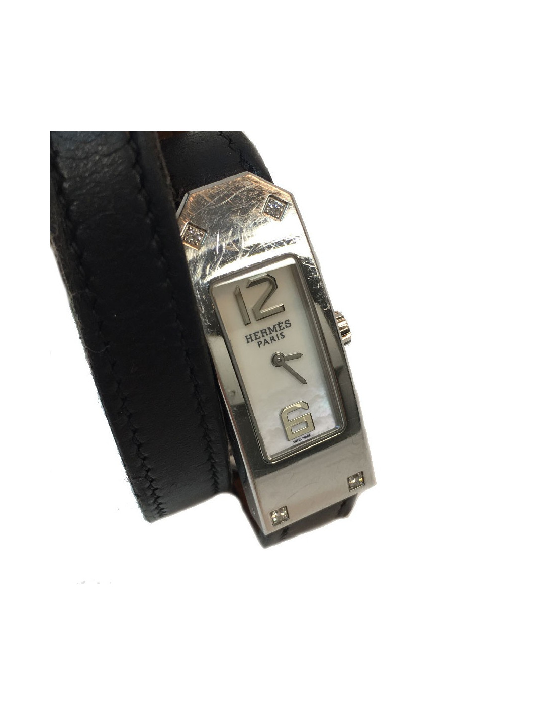 Montre HERMES Kelly II double tour en cuir noir