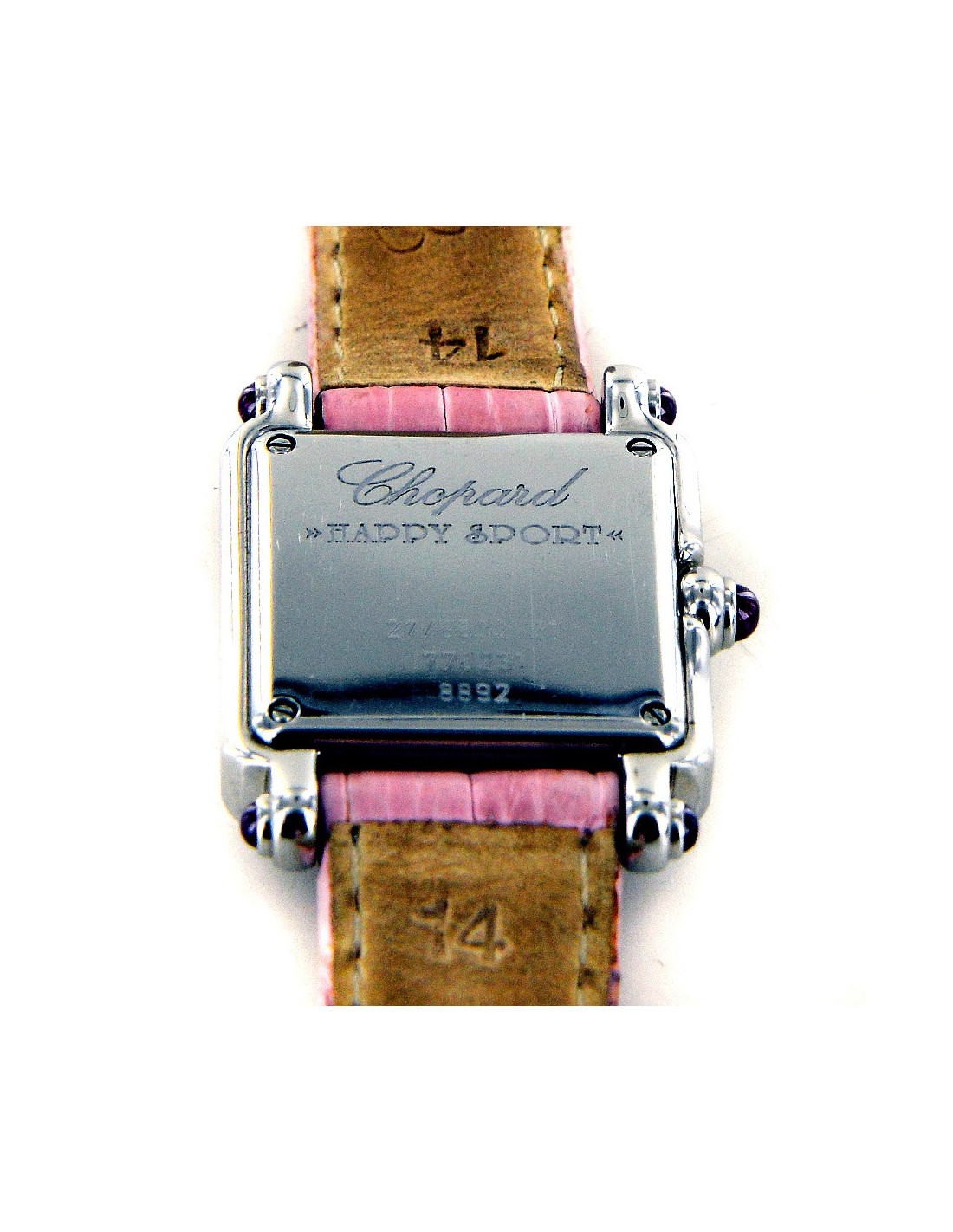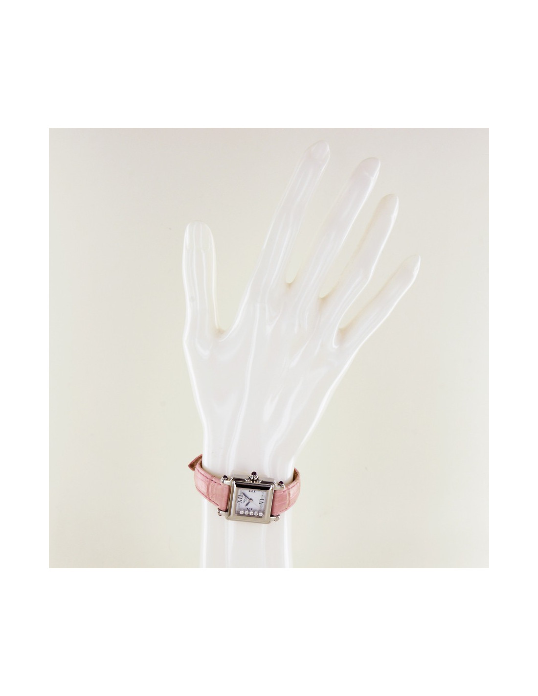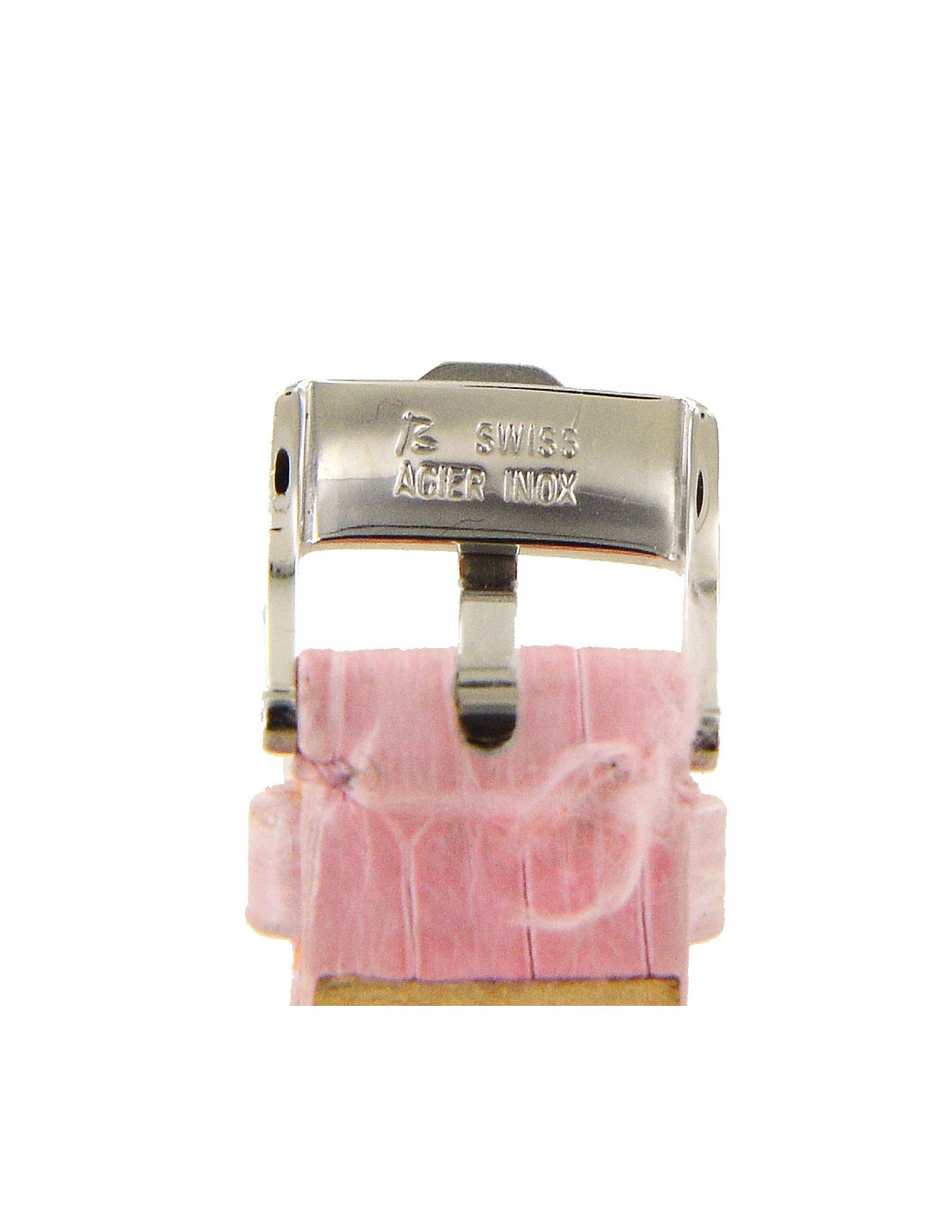 Le bracelet est en crocodile rose de 17 cm jusqu'au dernier trou.
