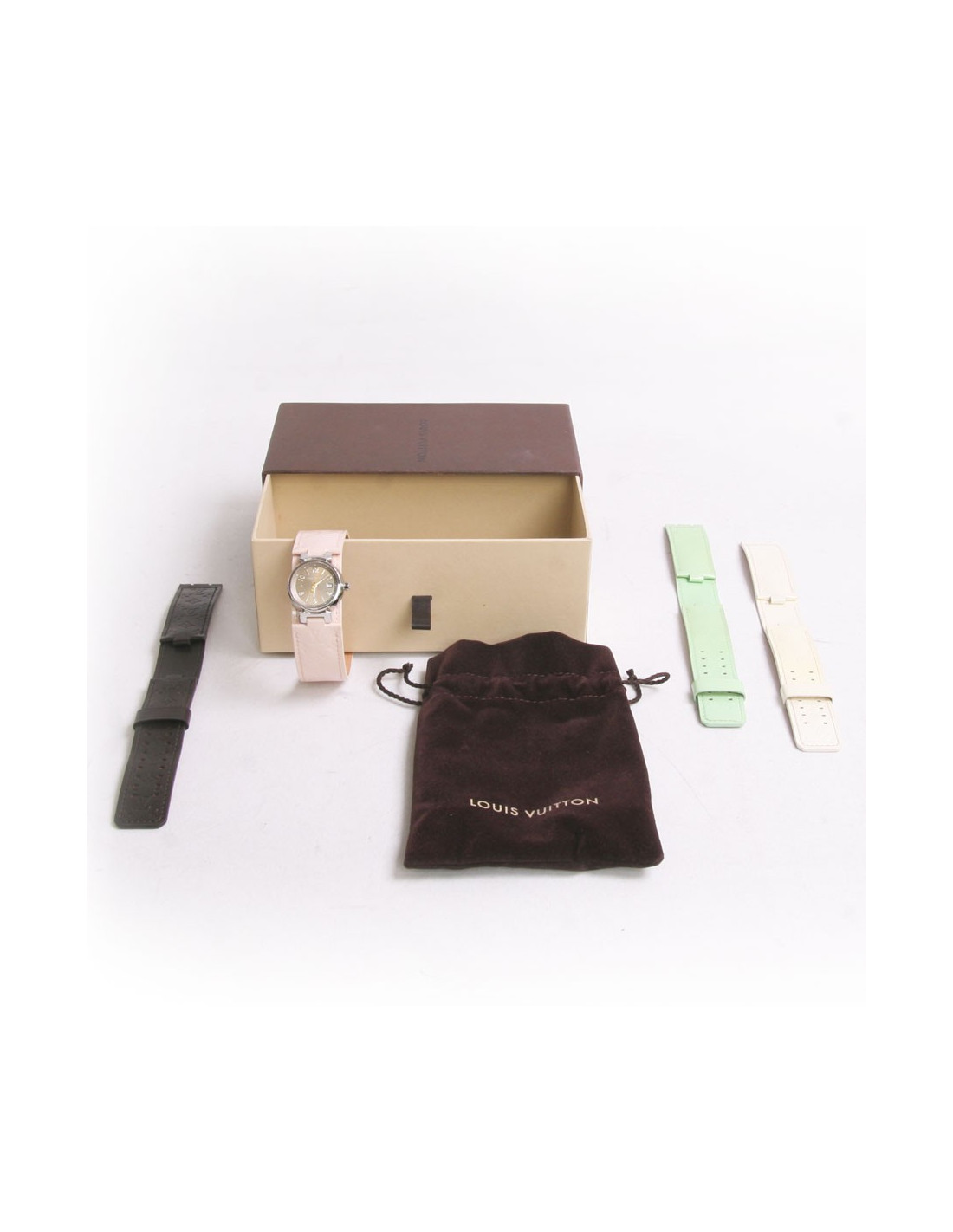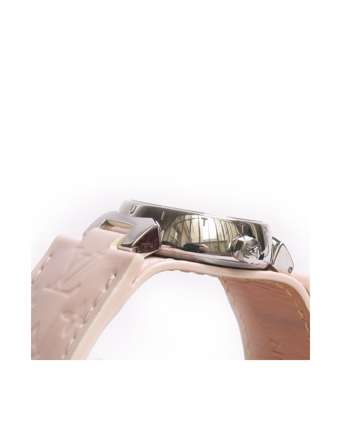 Montre "Tambour" Louis Vuitton, avec bracelet monogram rose poudré verni, à quartz, petit modèle.