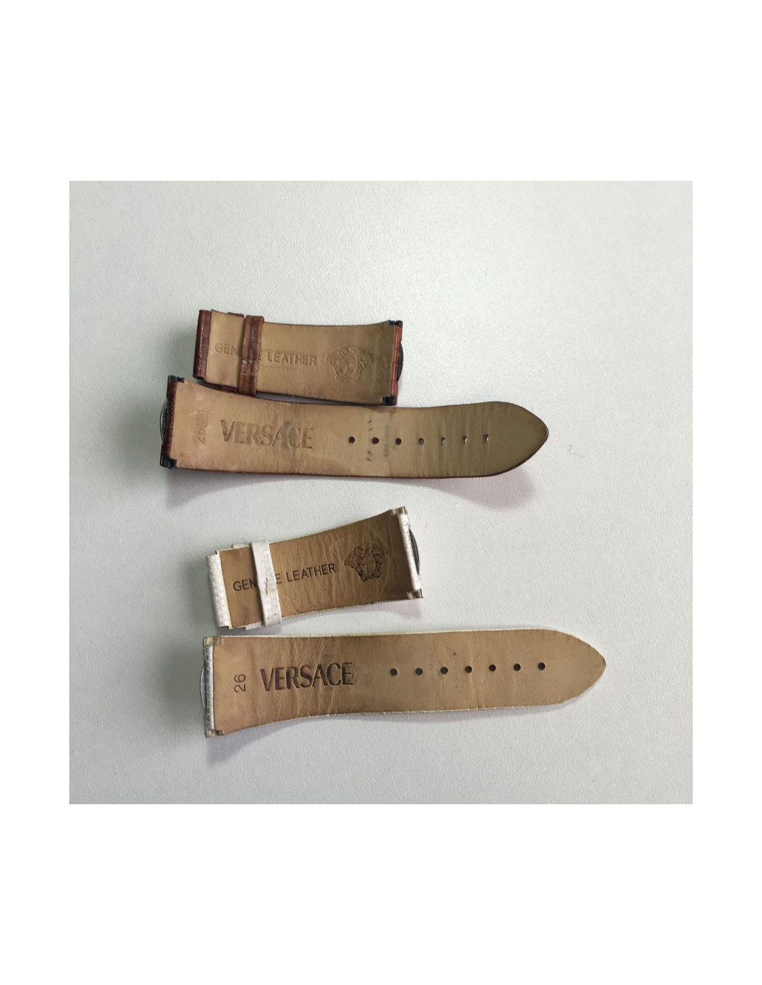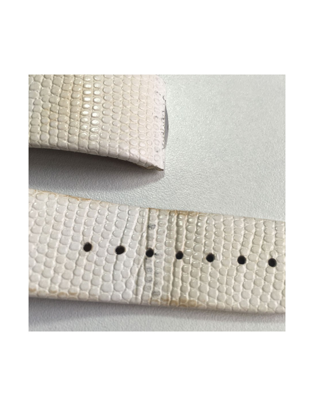 2 autres bracelets disponibles en cuir marron façon croco et en cuir blanc façon lézard (bracelet tâché)
