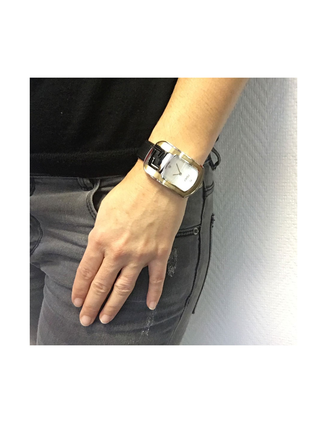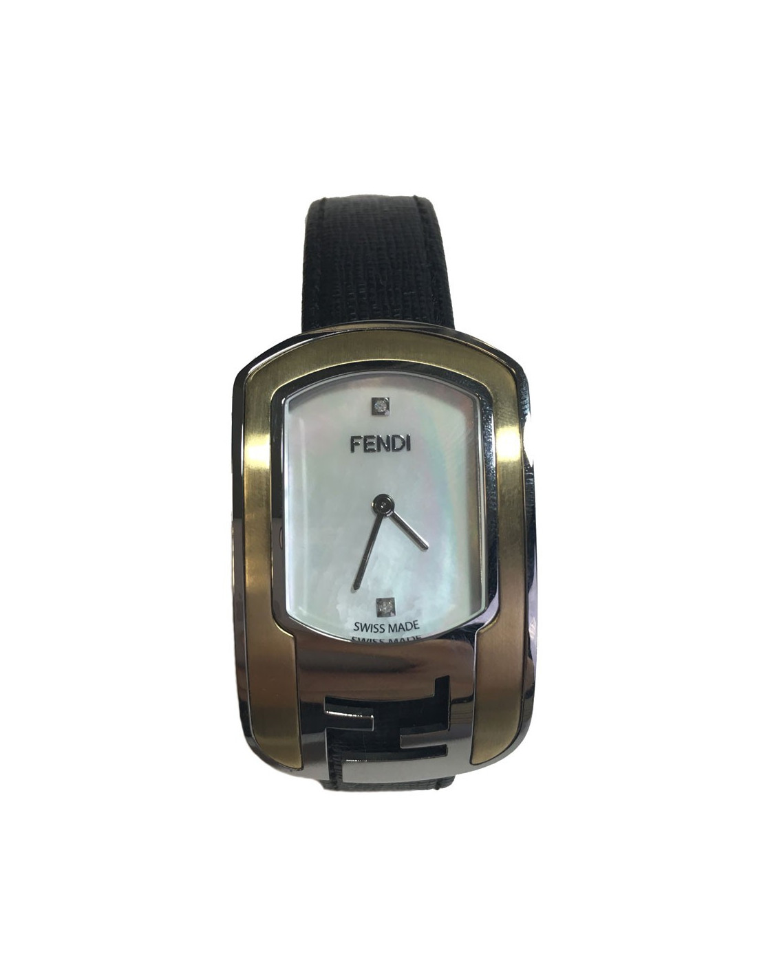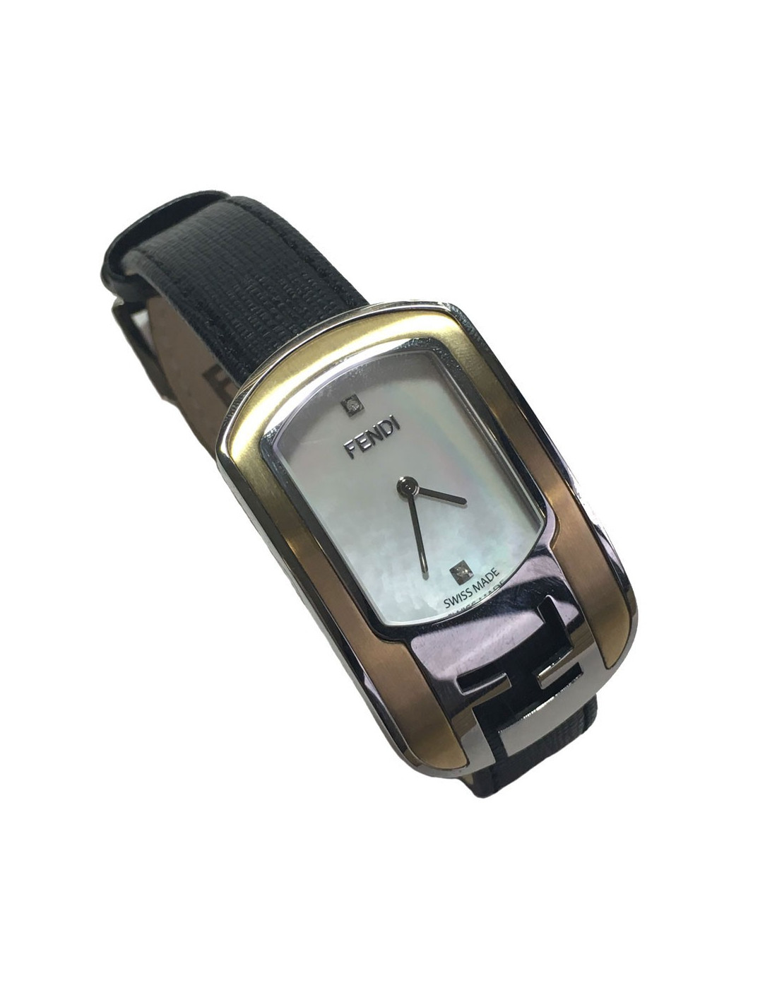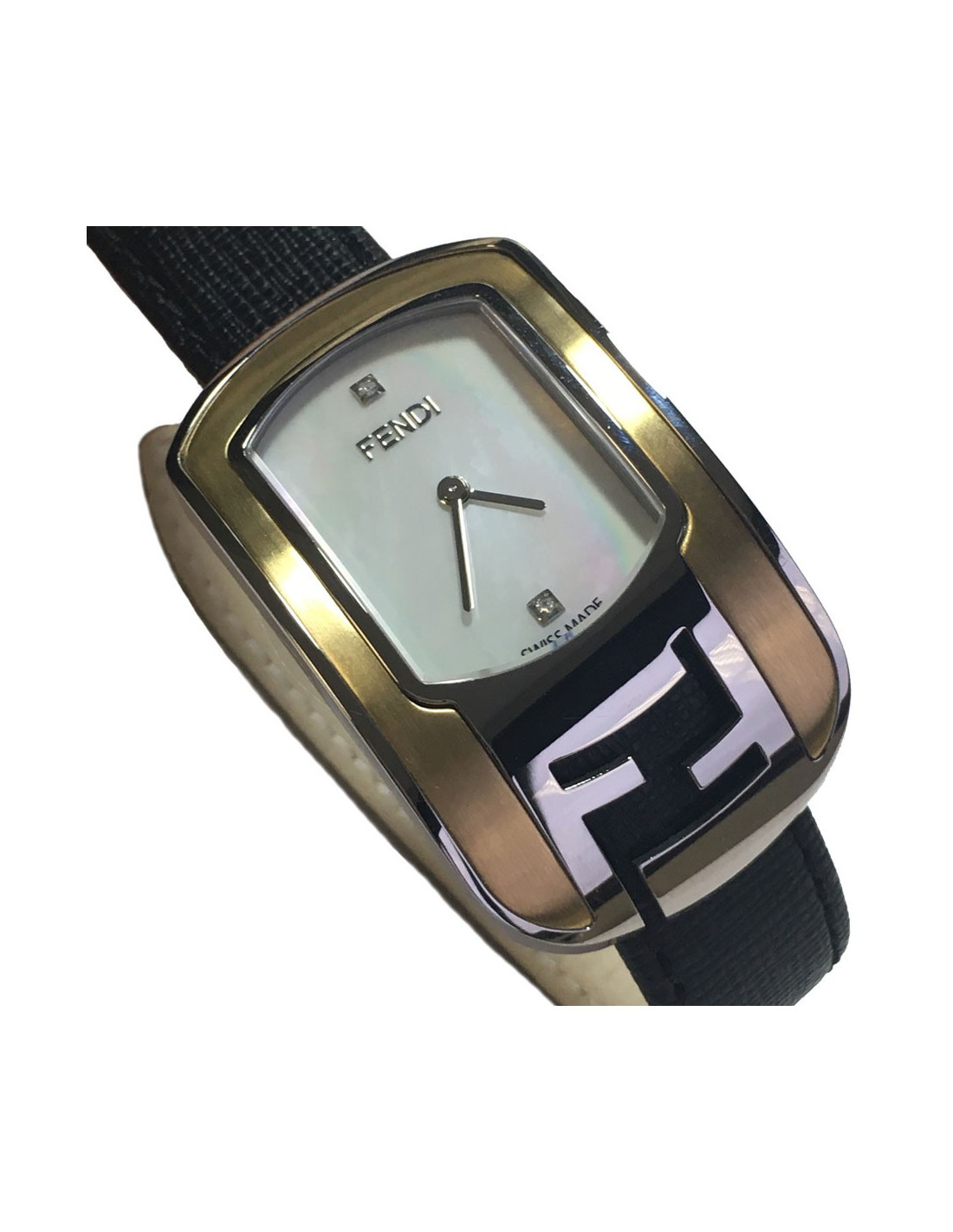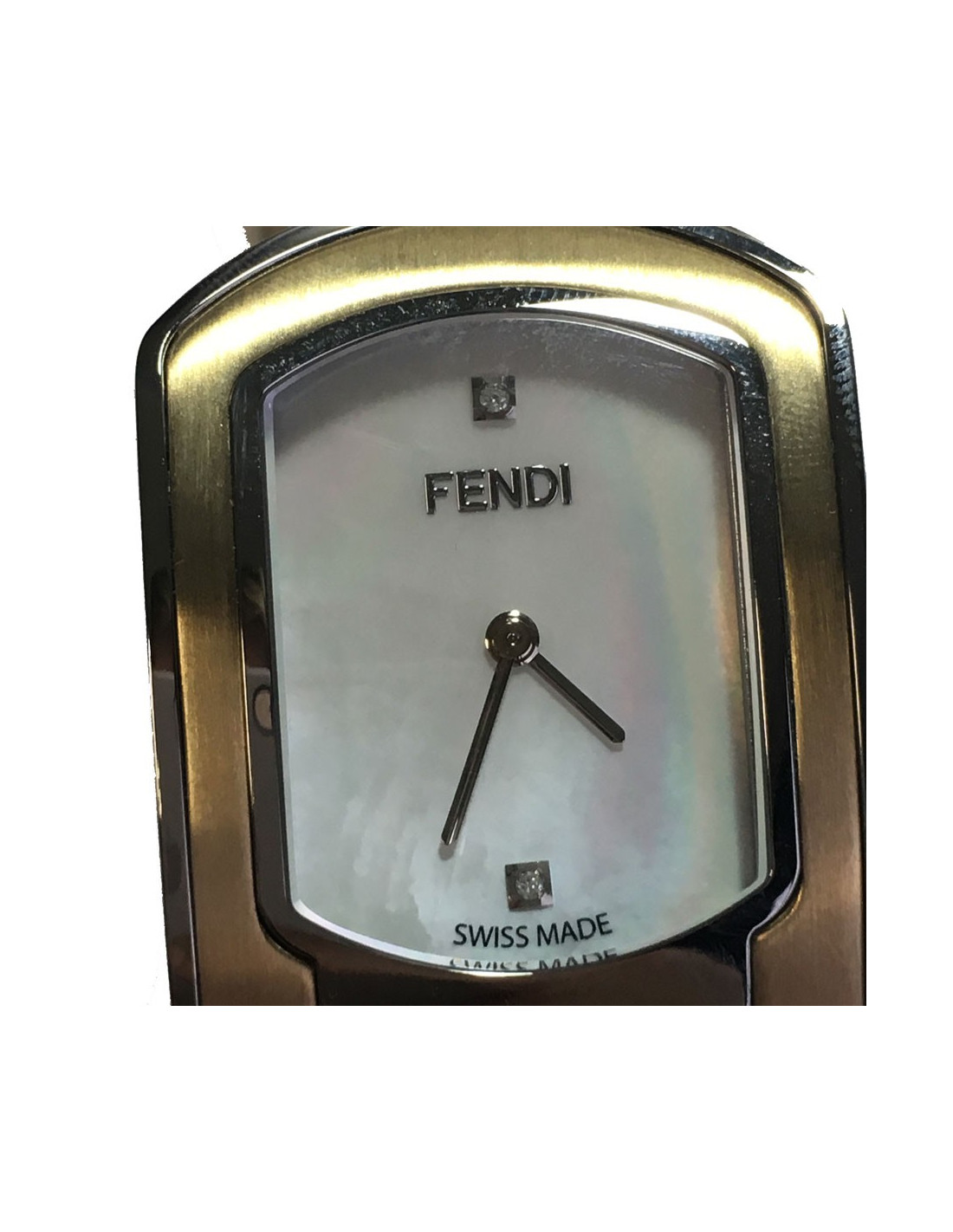Montre FENDI, collection caméléon. Boîtier en acier couleur or jaune, empiècement en acier argenté.