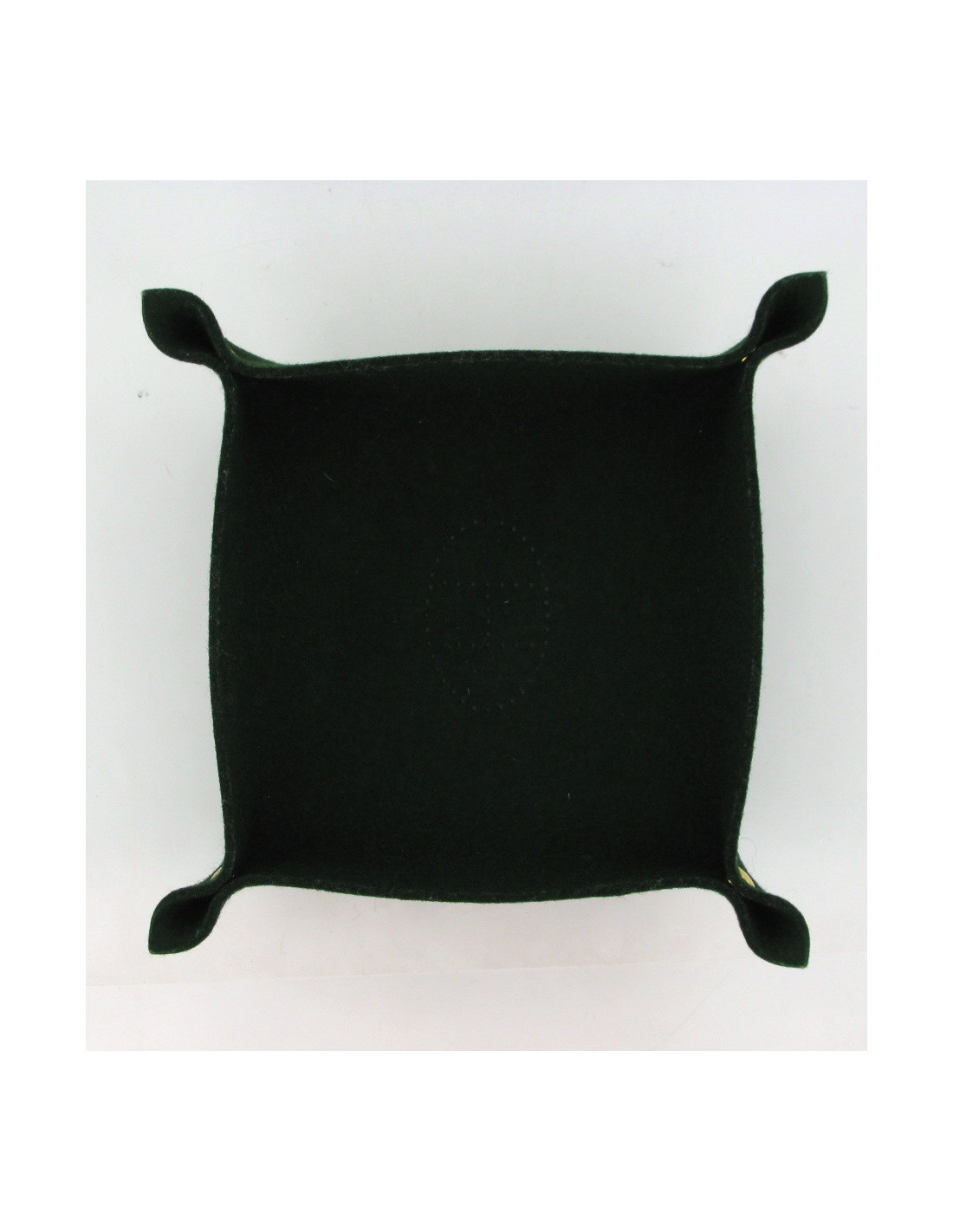 Ce vide- poches HERMES est une jolie idée de cadeau. Il est en feutrine vert sapin. Le H de Hermès y est inscrit au centre. avec 4 pressions à chaque extrémité .