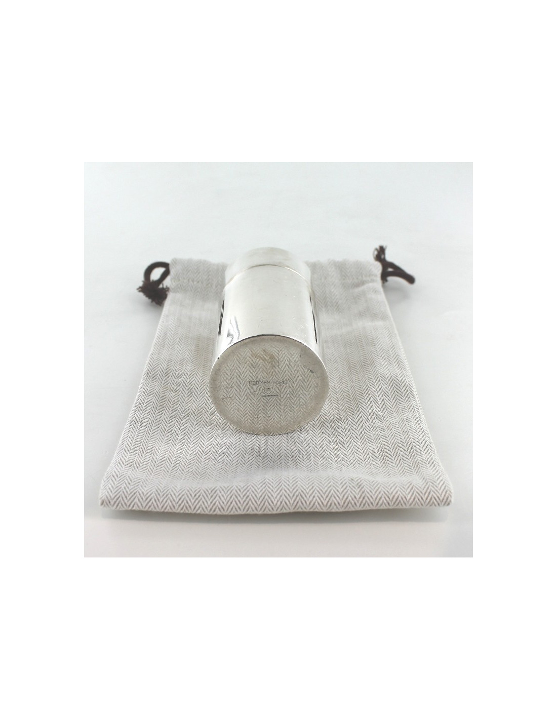 Briquet HERMES en argent massif, vintage. Pièce poinçonnée. Sur le chapeau, une boucle en métal doré, symbole de la maison. Pièce de collection. Rayures et usures. Made in France. Vendu avec son dustbag.