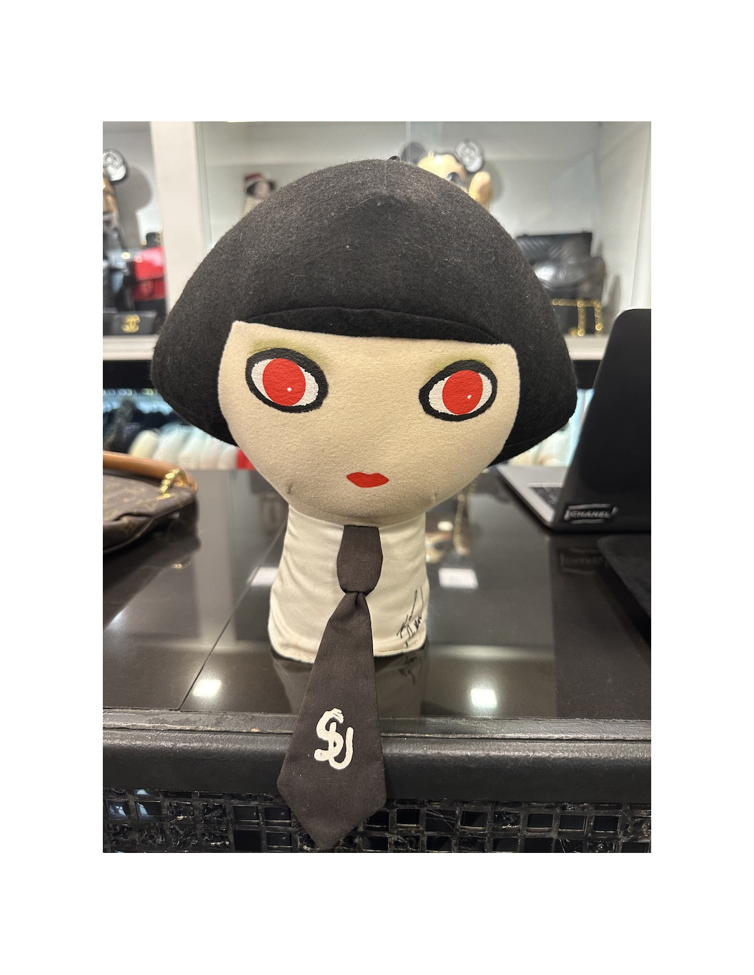 Détails : création de la poupée en collaboration de Karl Lagerfeld avec la Maison Shu Uemura, appelée Mon Shu Girl.