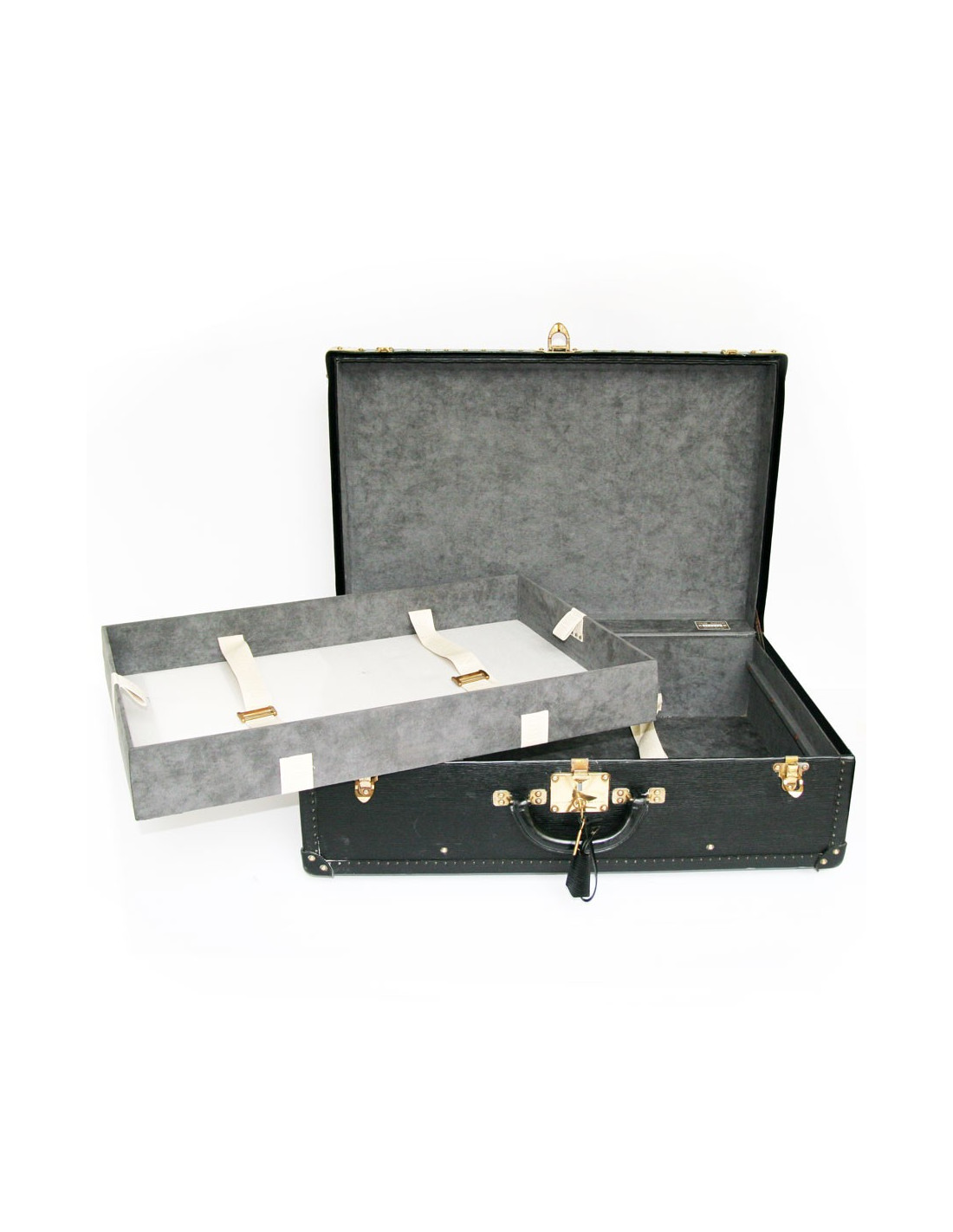 L'intérieur se compose en deux compartiments avec sangles pour maintenir les vetements.