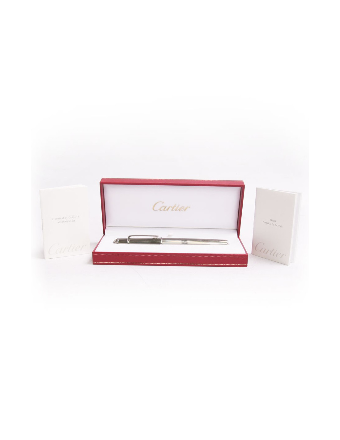 Jolie idée de cadeau. Ce stylo à bille argenté "Diabolo" de la Maison Cartier argenté a été très peu utilisé. Il a son certificat d'authenticité . En très bon état.