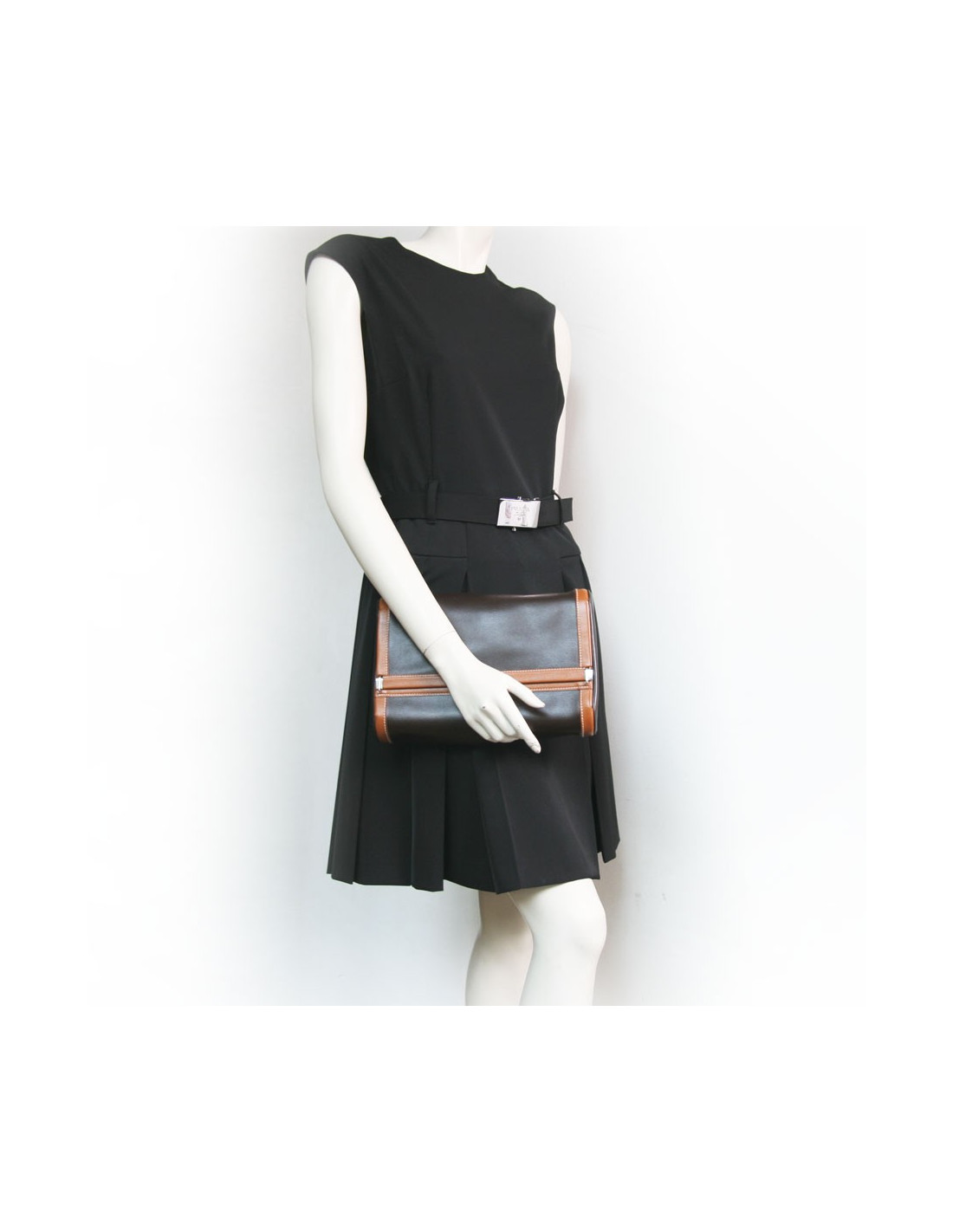 Trousse de toilette HERMES toile et cuir marron et gold