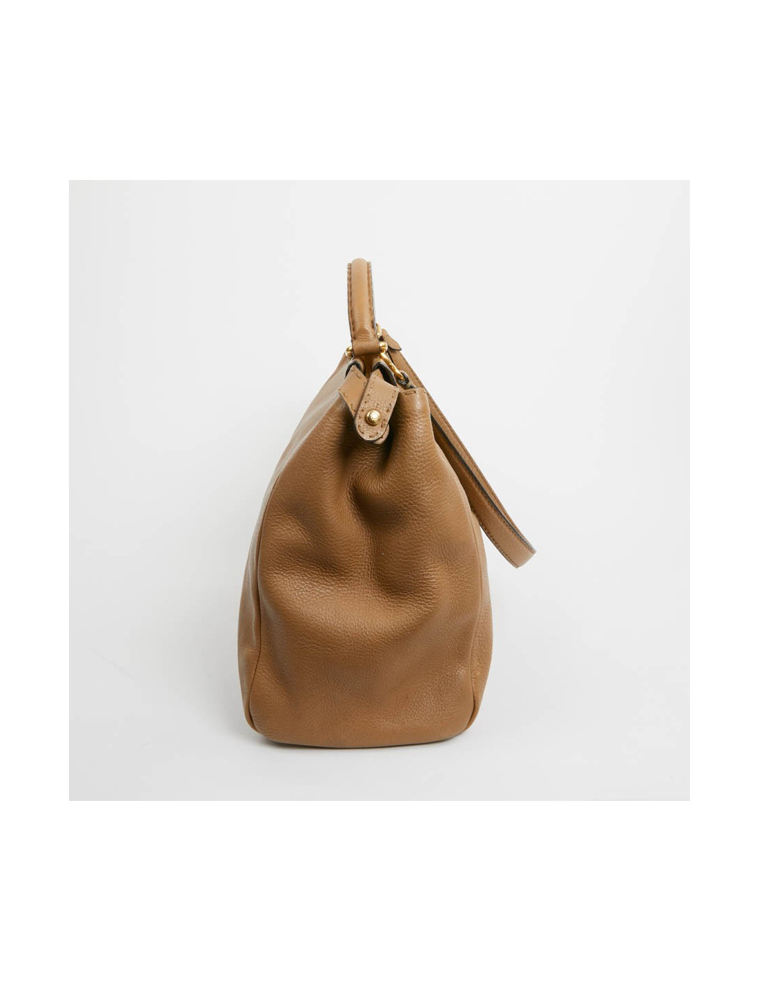 De fabrication italienne, ce cabas à double compartiments mesure : longueur 40 cm, hauteur 31 cm, profondeur 13 cm; en bon étage d'usage le cuir est un peu marqué par endroits, les coins sont patinés.