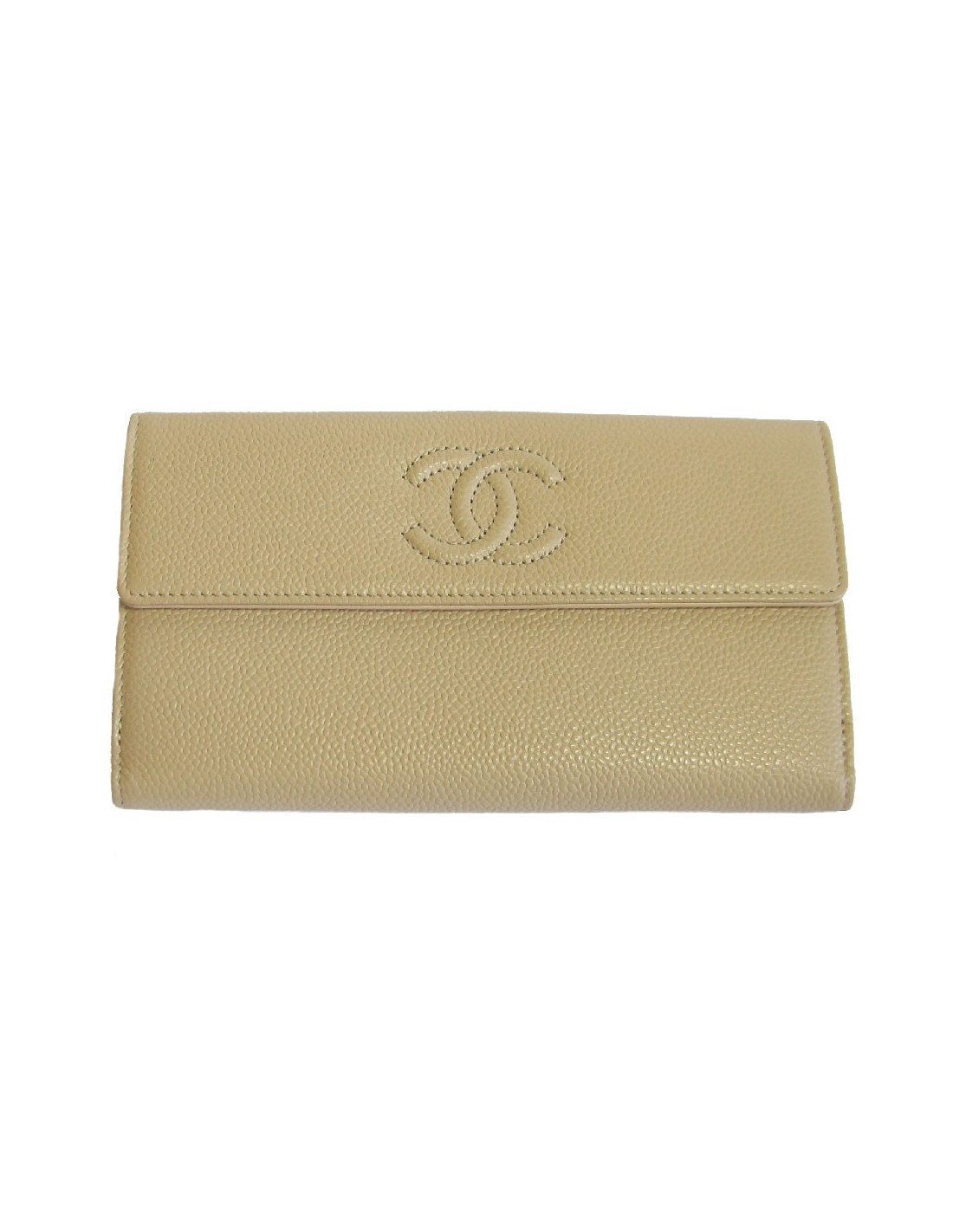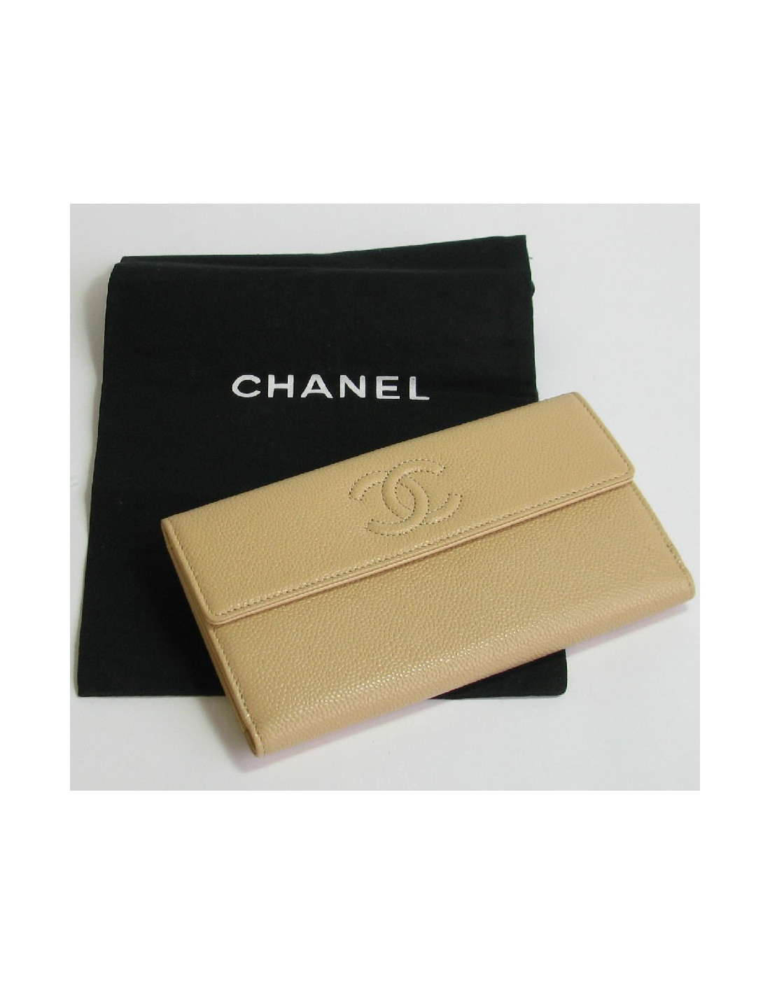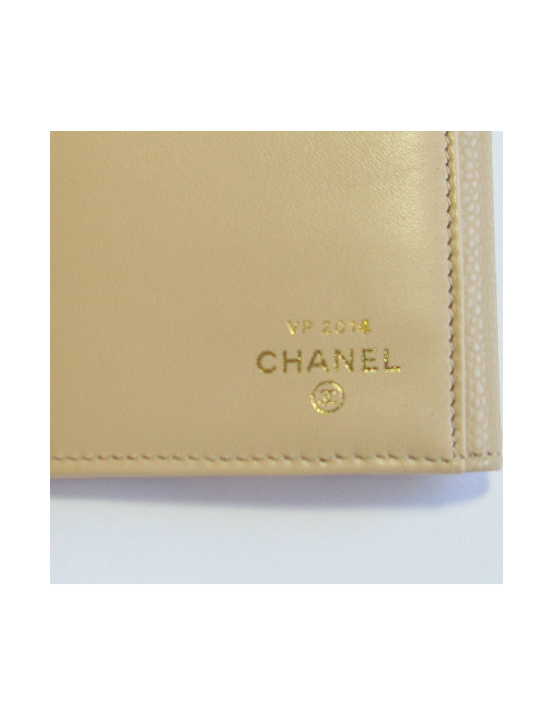 Portefeuille Chanel en cuir caviar beige. Etat neuf.