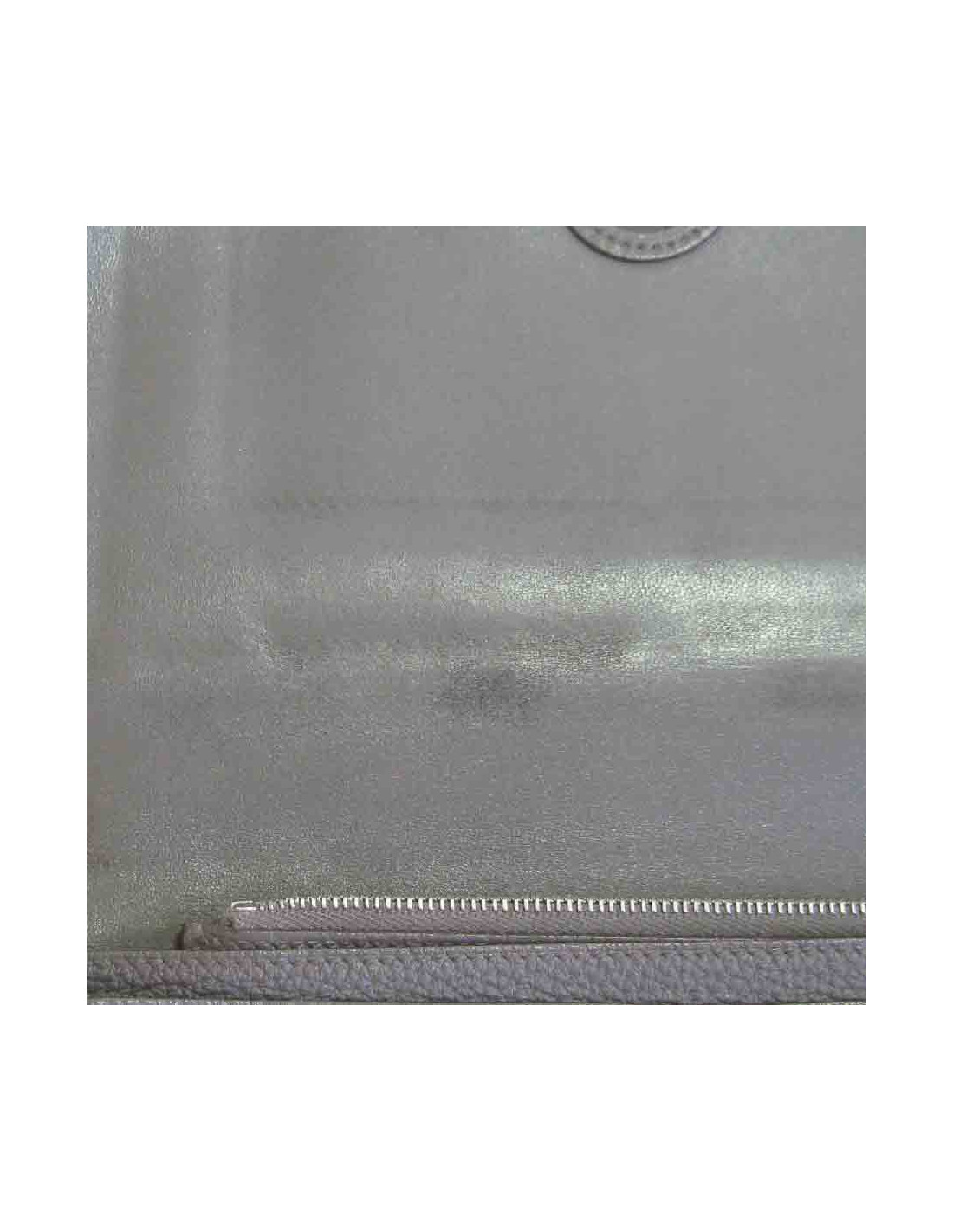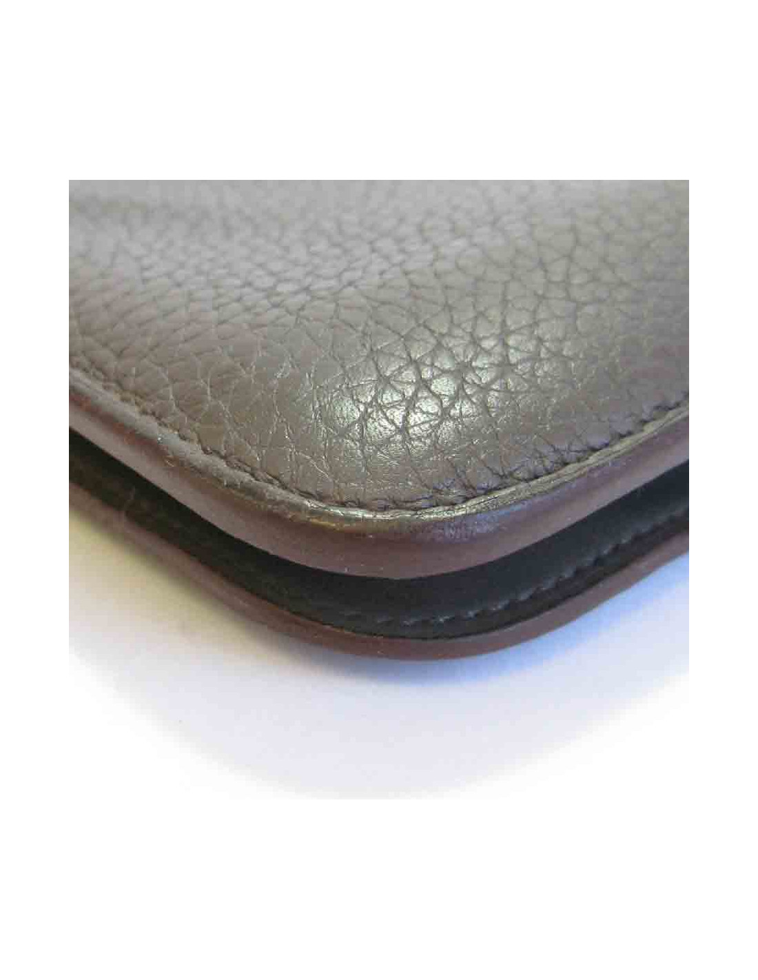 En bon état. Le cuir est patiné. Traces d'usage à l'intérieur du portefeuille (voir photo). La bijouterie est en très bon état.