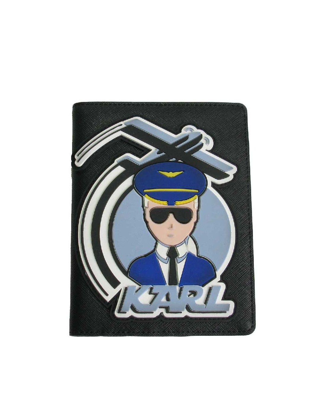 Étui pour passeport Karl Lagerfeld, SOLD OUT collection Fly With Karl en simili cuir. Appliqué : Karl pilote.
