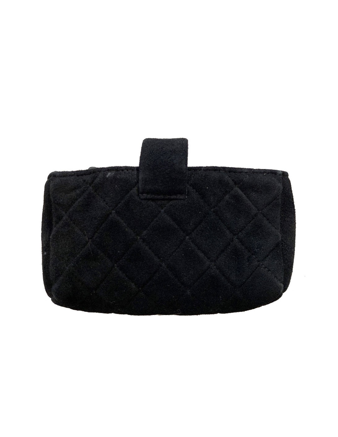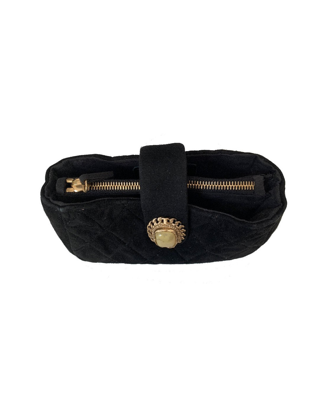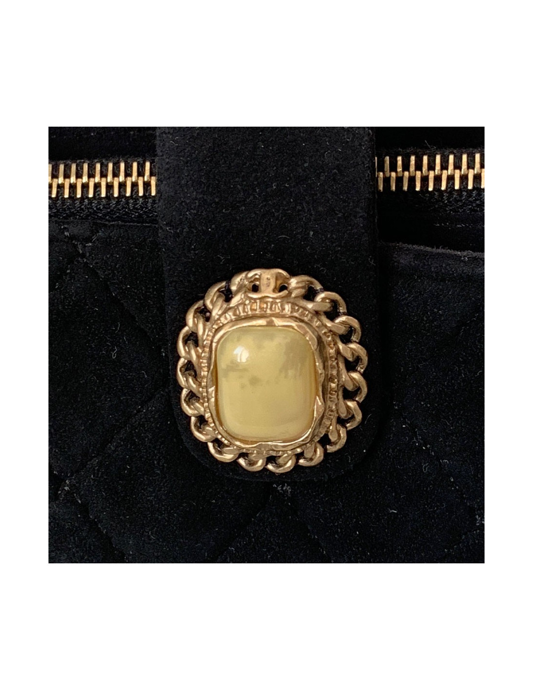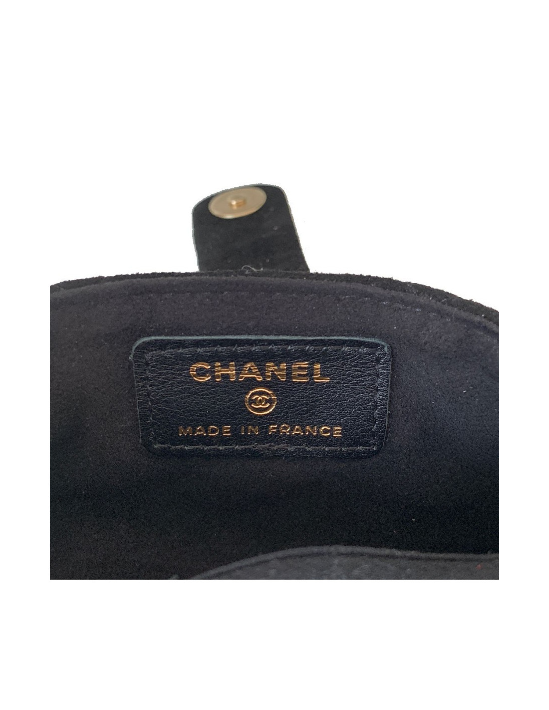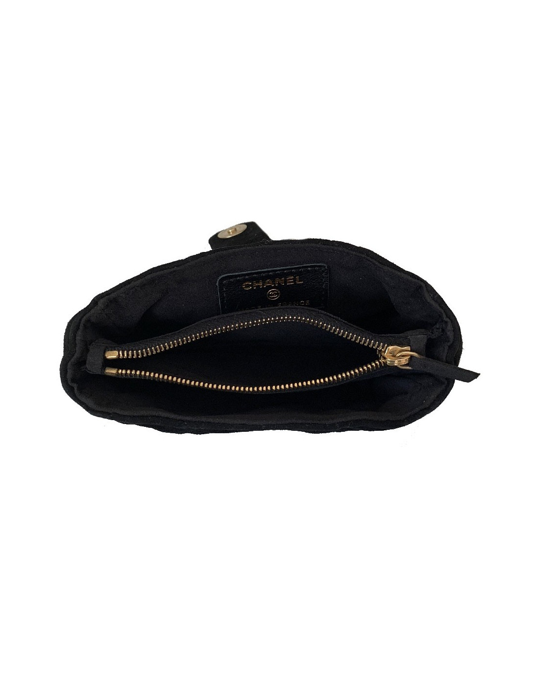 Porte monnaie CHANEL suède noire et cabochon jaune