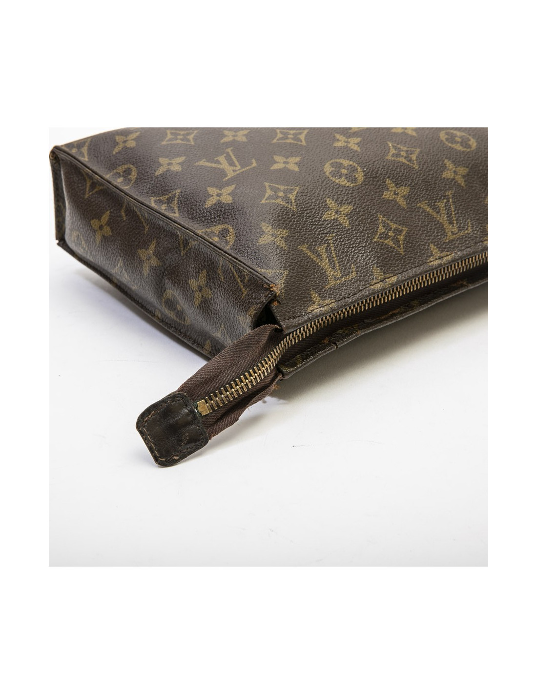 Pochette vintage Louis Vuitton en toile monogram. Fermeture zippée dorée.