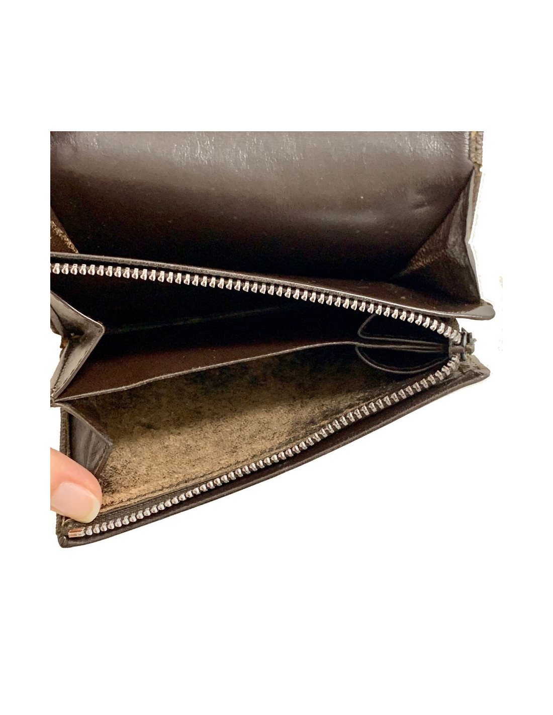 Il est en bon état extérieur. Les coins ont des traces d'usages et sont un peu fendillés. L'intérieur a quelques griffures et l'intérieur du porte-monnaie est dans un état correct. Son cuir est abimé (voir photo).