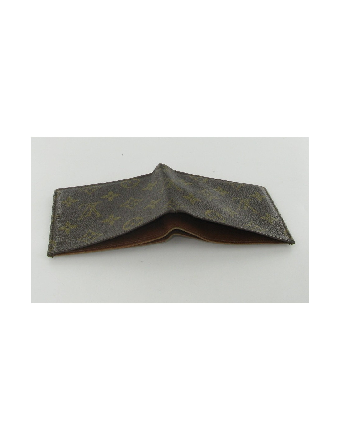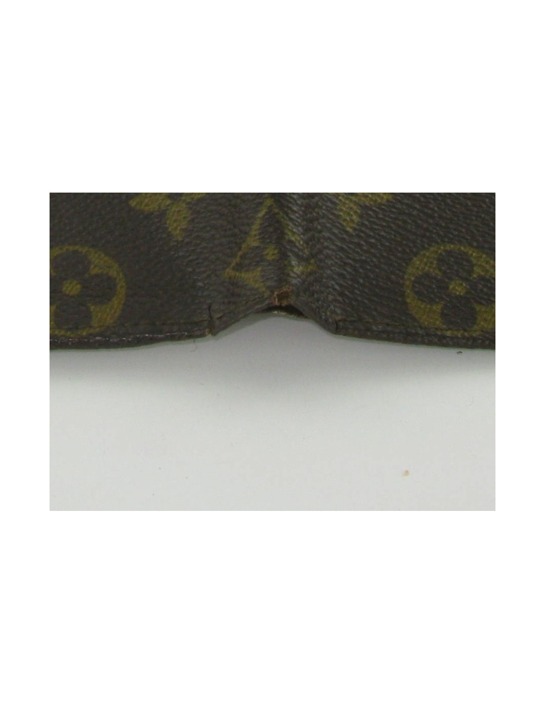 Portefeuille LOUIS VUITTON vintage en toile enduite monogrammée LOUIS VUITTON. L'intérieur est en cuir grainé marron. Il y a : 3 fentes pour les cartes, 2 soufflets pour les billets, 2 poches et 2 soufflets pour les cartes. A l'extérieur, les coins sont légèrement abimés. A l'intérieur, le cuir a des marques d'usure. Livré avec son sac LOUIS VUITTON.