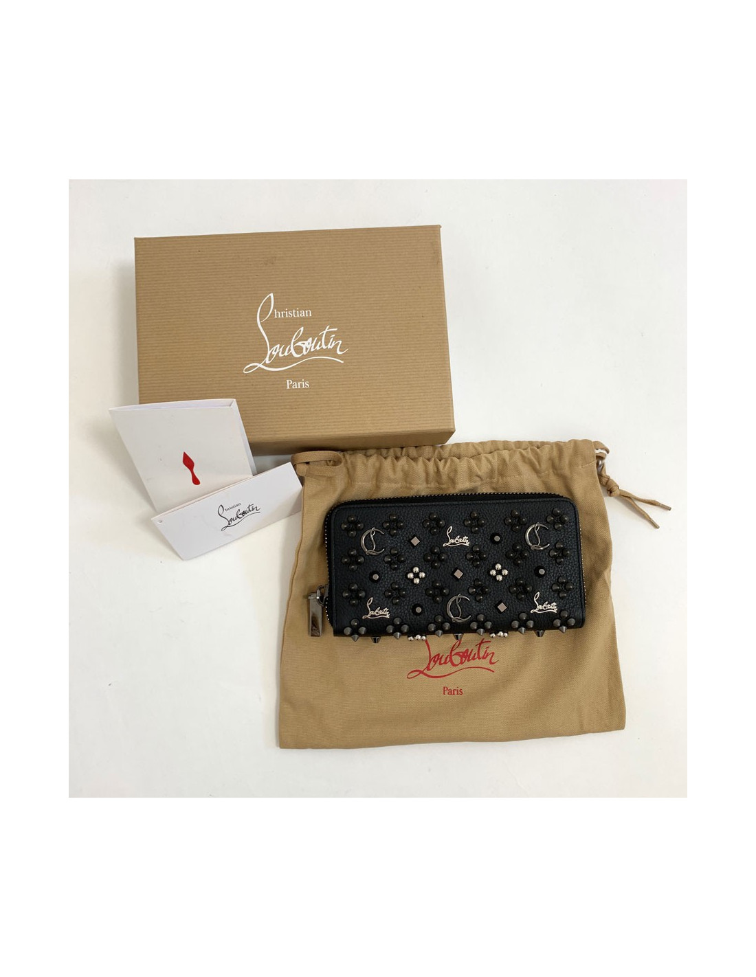 Portefeuille LOUBOUTIN Panettone cuir noir clouté