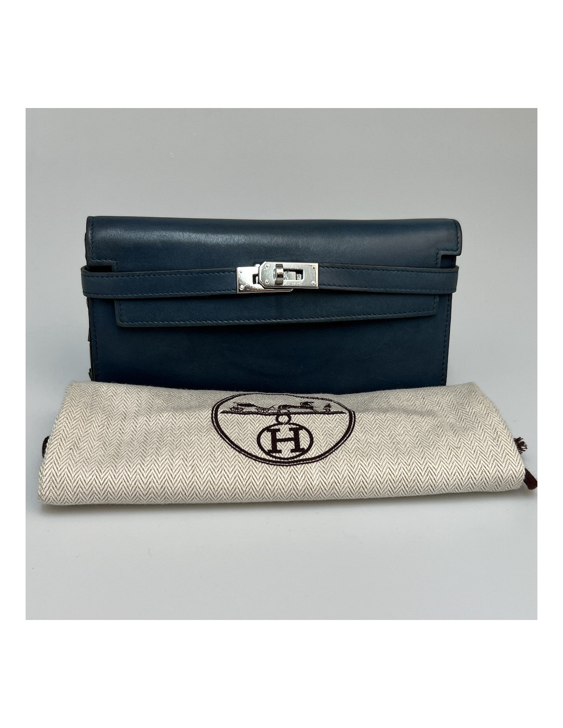 Portefeuille Kelly HERMES cuir bleu