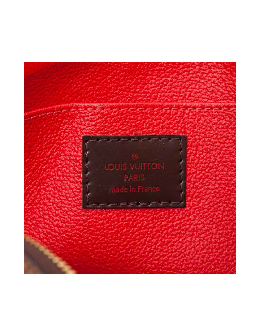 Cette trousse petit modèle LOUIS VUITTON est en toile enduite Damier Ébène doublé de cuir grainé rouge avec une fermeture à glissière. Les finitions sont en cuir de vache. Elle pourra se glisser facilement dans votre sac à main. Sa base plate permet de trouver facilement ses produits.