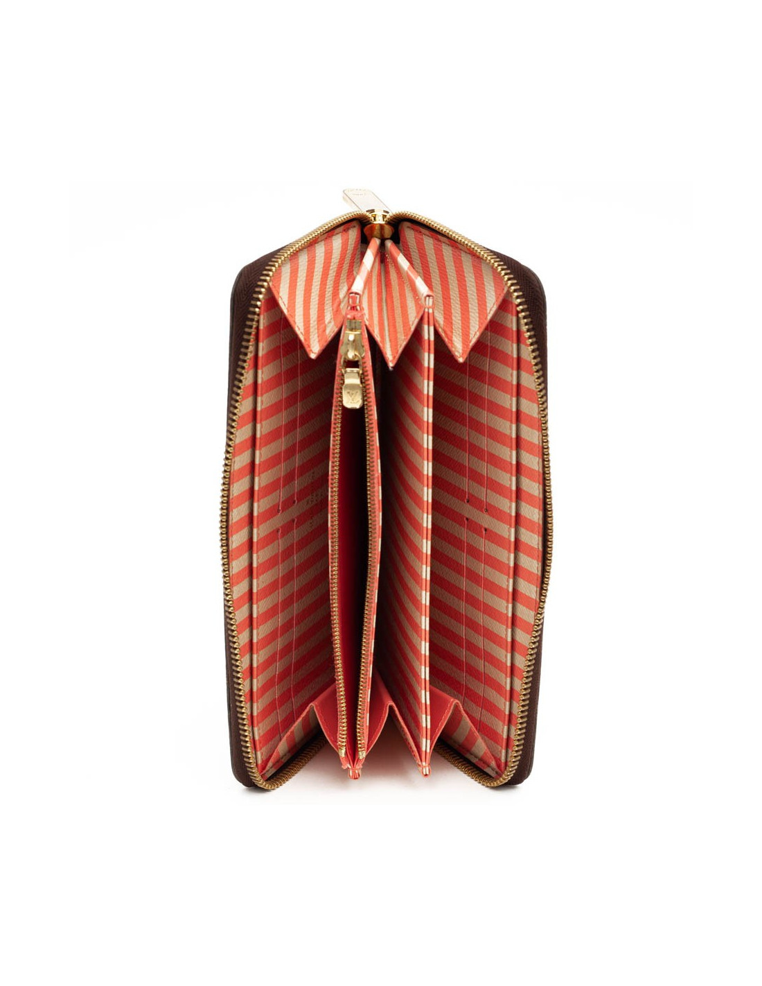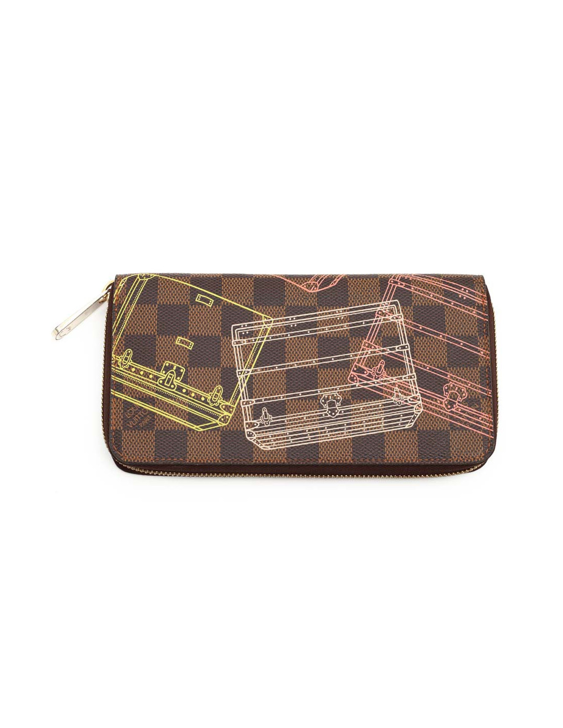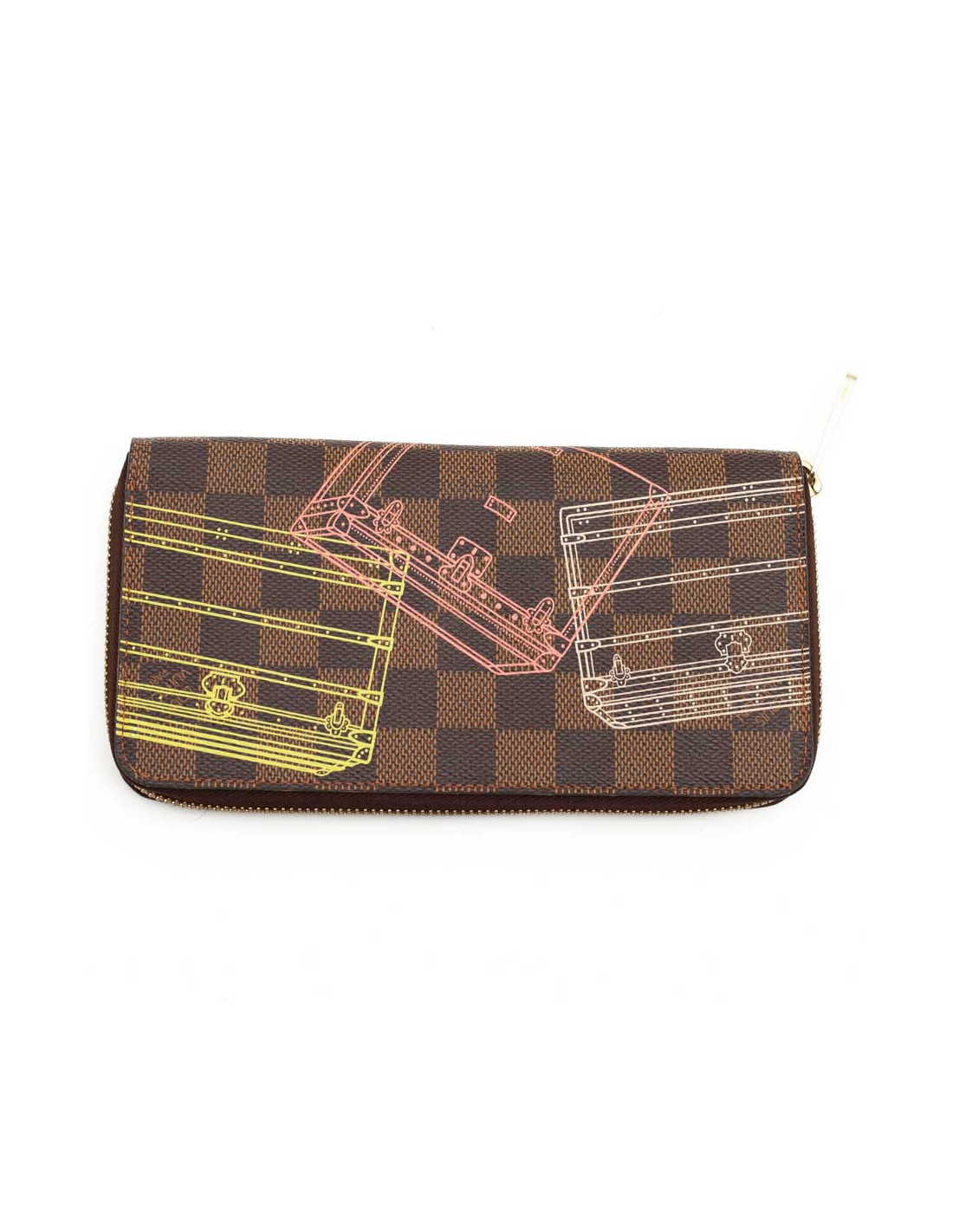 Modèle intemporel de la Maison Louis Vuitton, ce portefeuille Zippy est cette fois décliné en toile damier Ebène avec un motif de malles. Les malles Vuitton sont iconiques et n'ont cessées d'évolution depuis leur apparition dans la Maison en 18958. La bijouterie est en laiton avec une fermeture à glissière. Ce portefeuille est doublé de cuir grainé blanc et rose. Il a différents compartiments, pour les billets, une poche fermée pour les pièces et des poches à fentes pour les cartes. Il sera facile à glisser dans un sac. Série limitée.