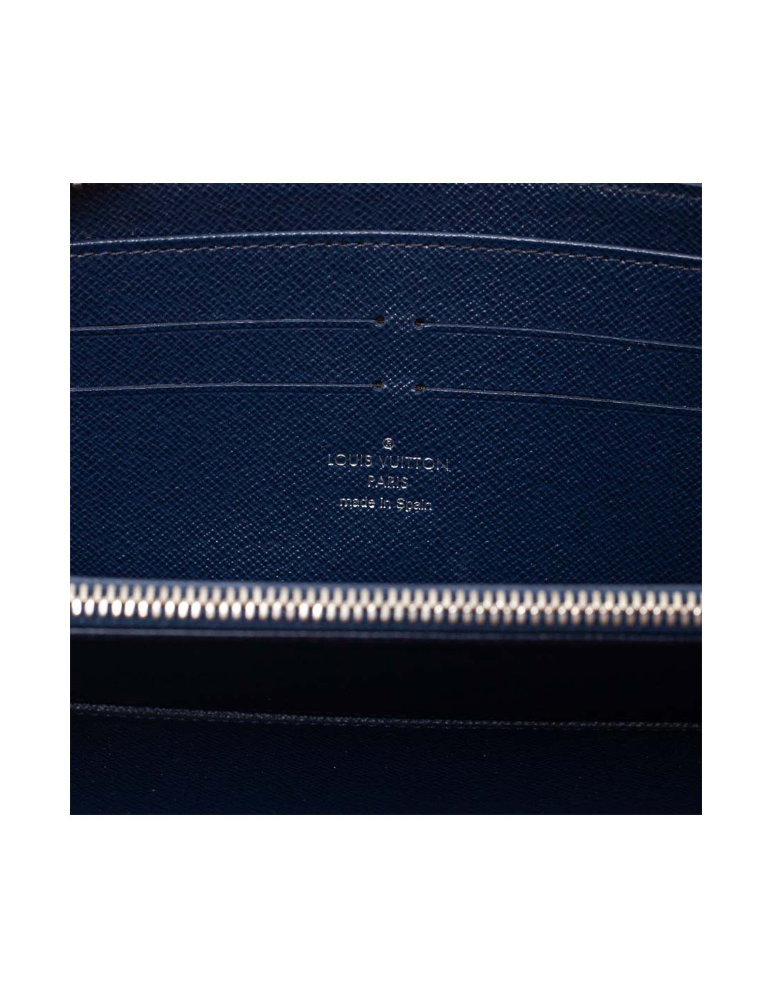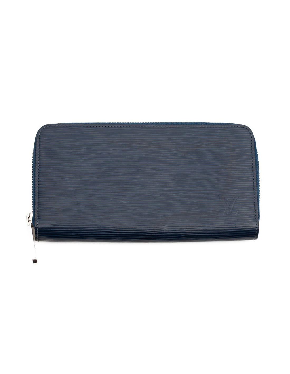 Grand portefeuille Zippy d'occasion de la Maison LOUIS VUITTON en cuir épi bleu. Les fermetures sont en argent palladié. Plusieurs espaces de rangement distinct pour les billets, cartes et pièces de monnaie. Facile à glisser dans votre sac à main.