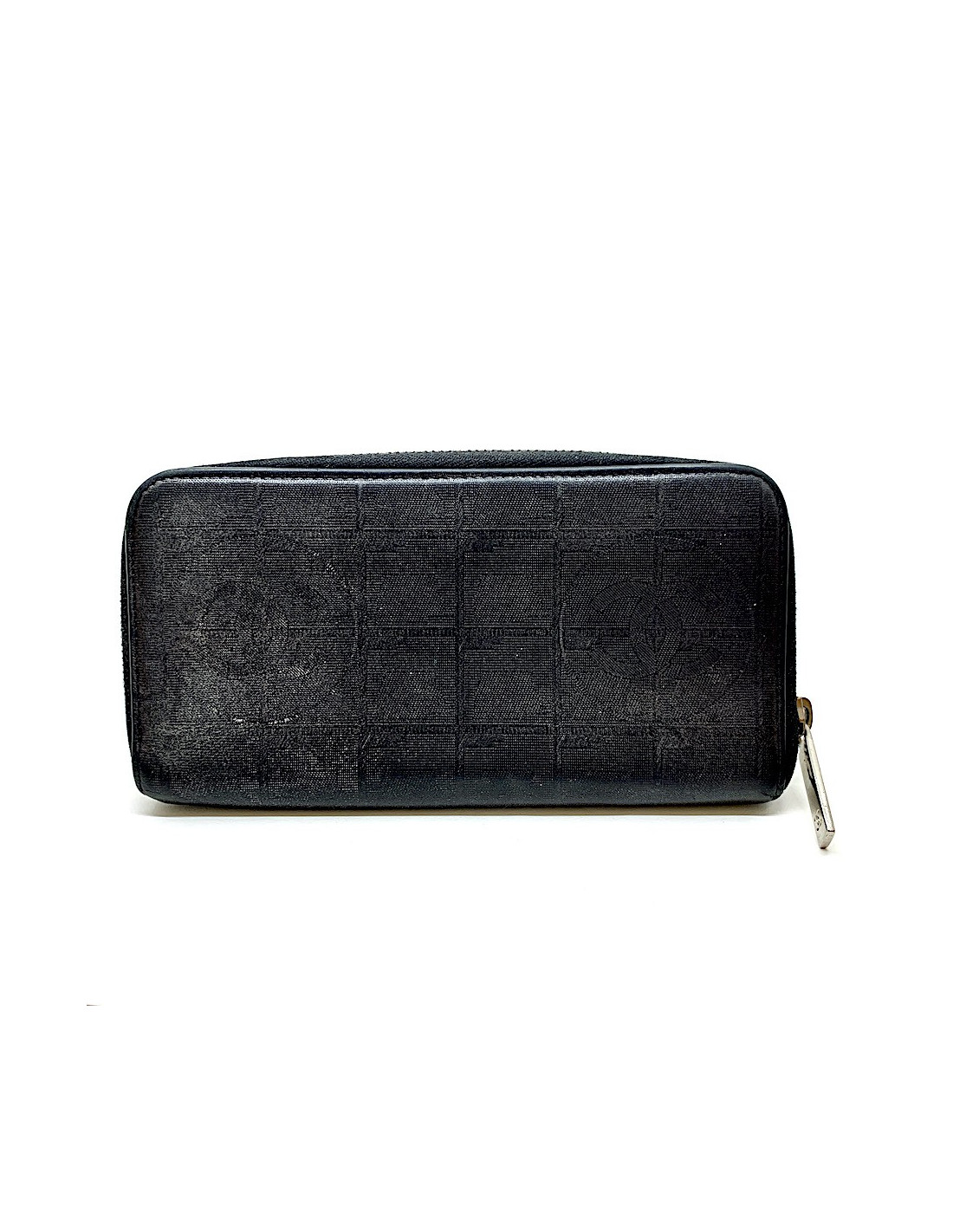 Petite maroquinerie de la Maison CHANEL. Compagnon vintage en cuir noir, CC en impression argent irisé.