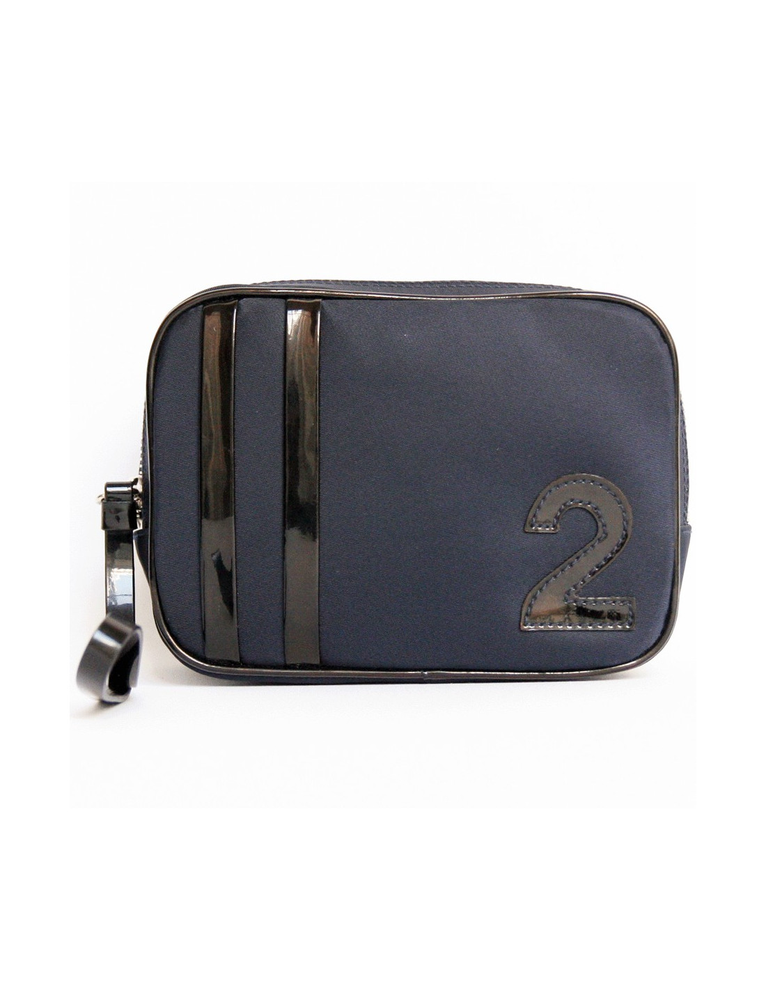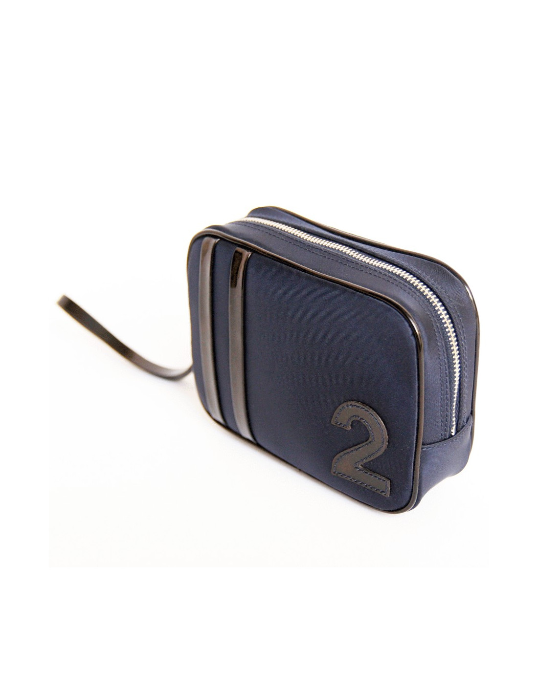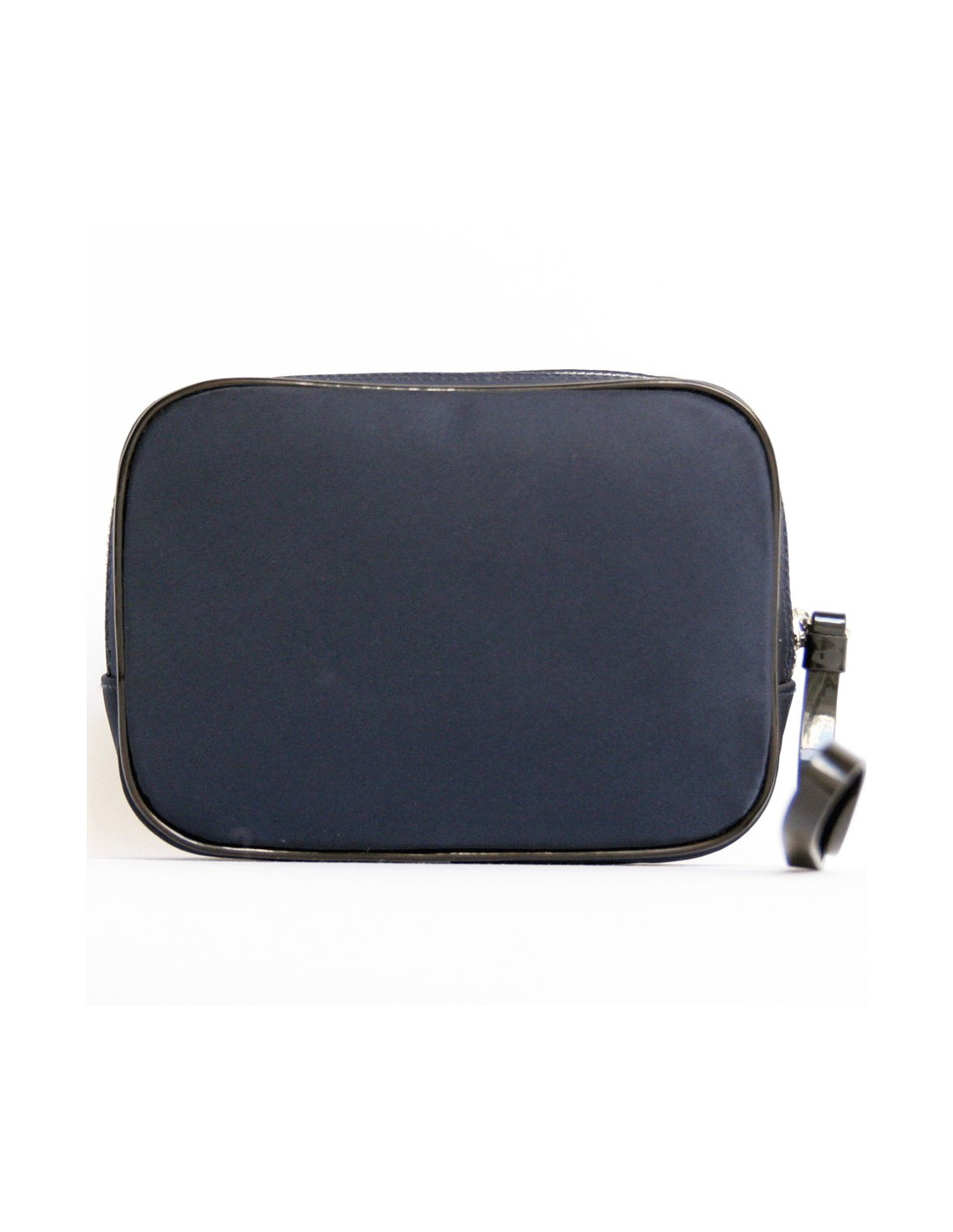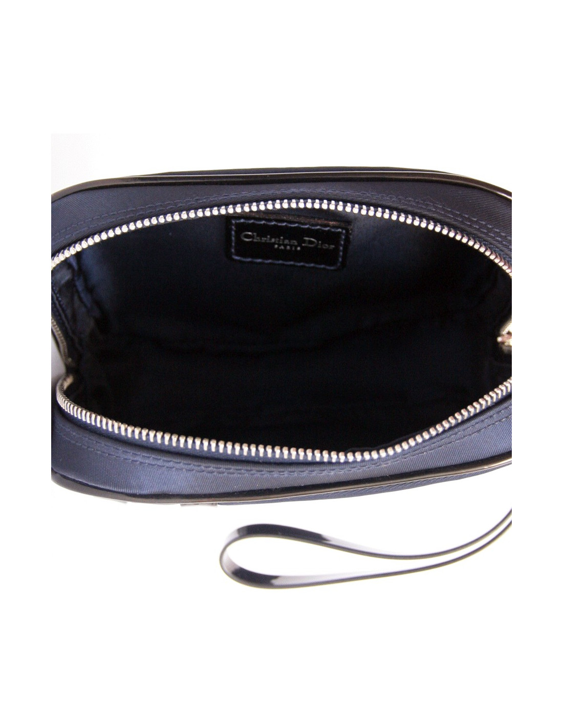 Petite pochette -trousse CHRISTIAN DIOR en toile bleu marine et cuir verni noir.
