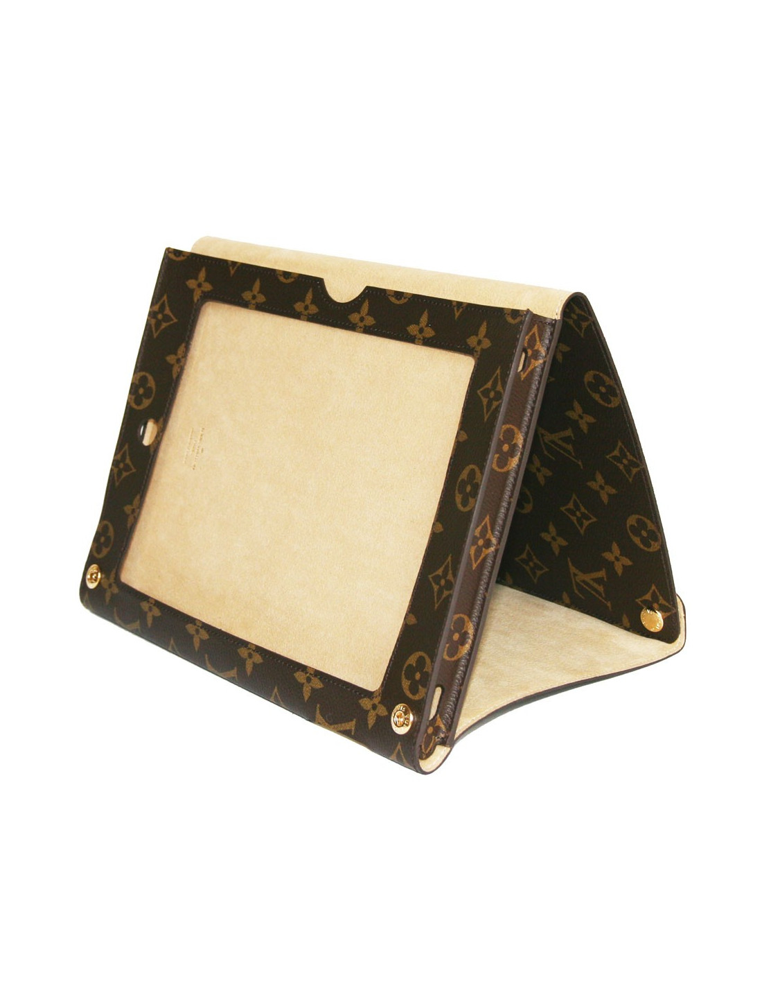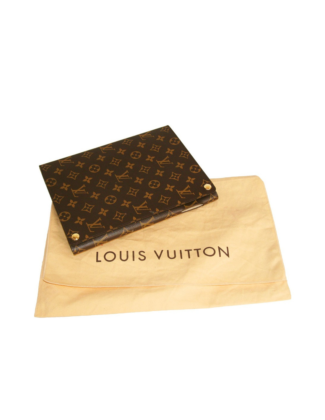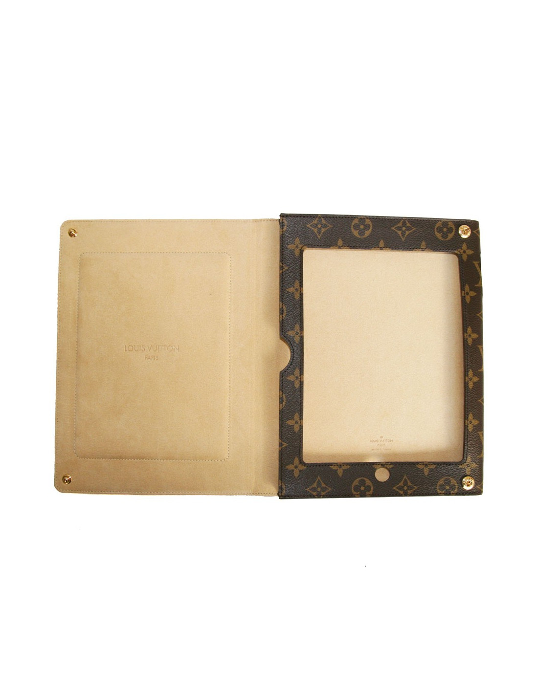 Etui IPAD de Louis Vuitton, en toile monogram et doublure intérieure en microfibre sur la laquelle il y a la signature embossée de LOUIS VUITTON.