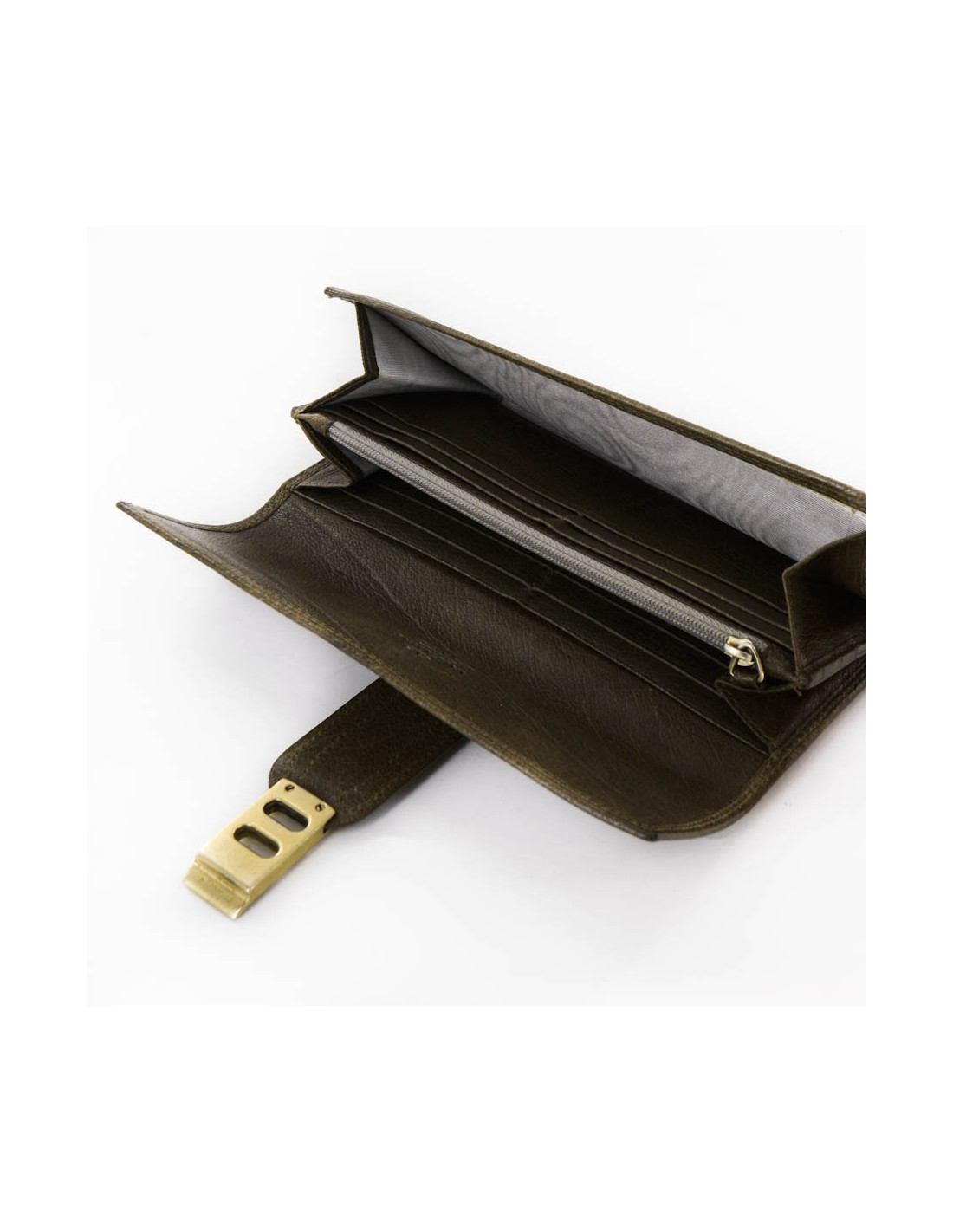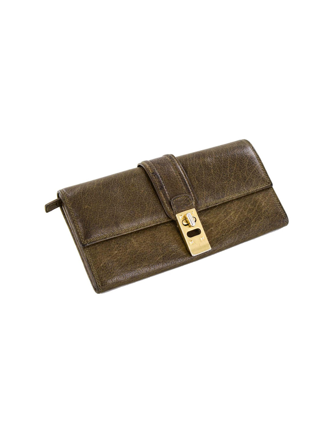 Portefeuille Valentino en cuir de vachette marron. L'intérieur est en cuir et satin clair. Il peut contenir 12 cartes de crédit - 2 compartiments pour les billets et un compartiment zippé pour les pièces de monnaie.