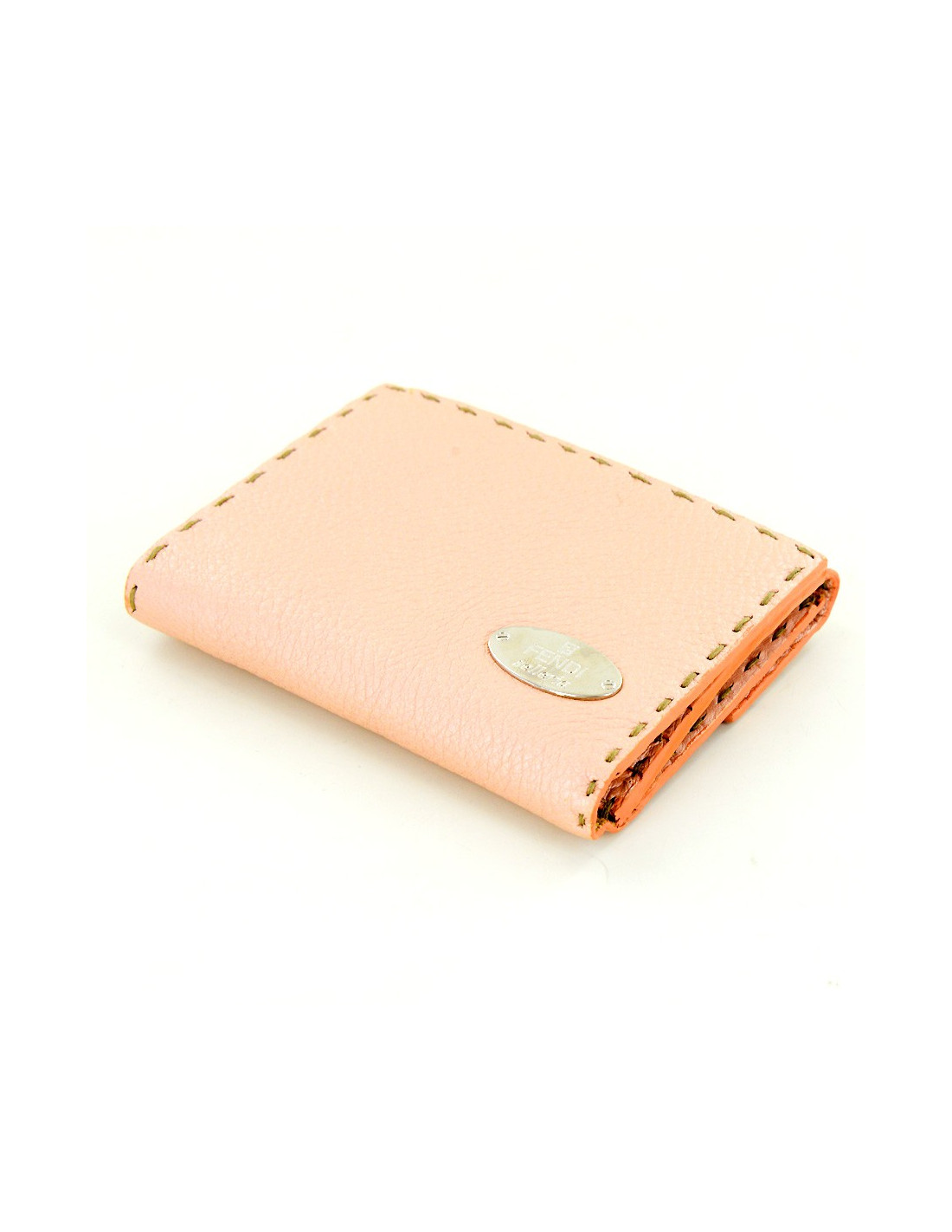 Portefeuille Fendi en cuir grainé rose poudré et piqûres sellier, neuf.